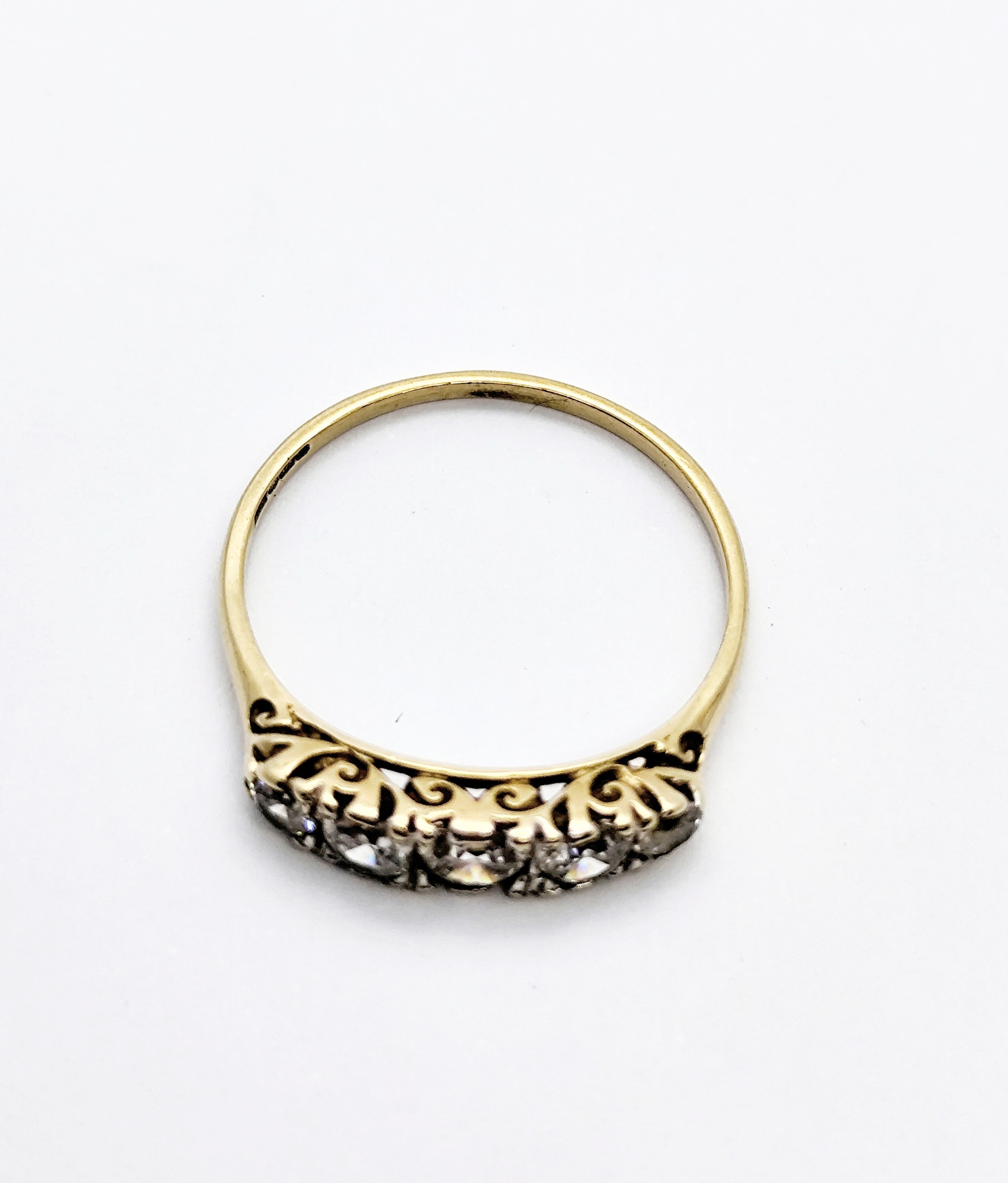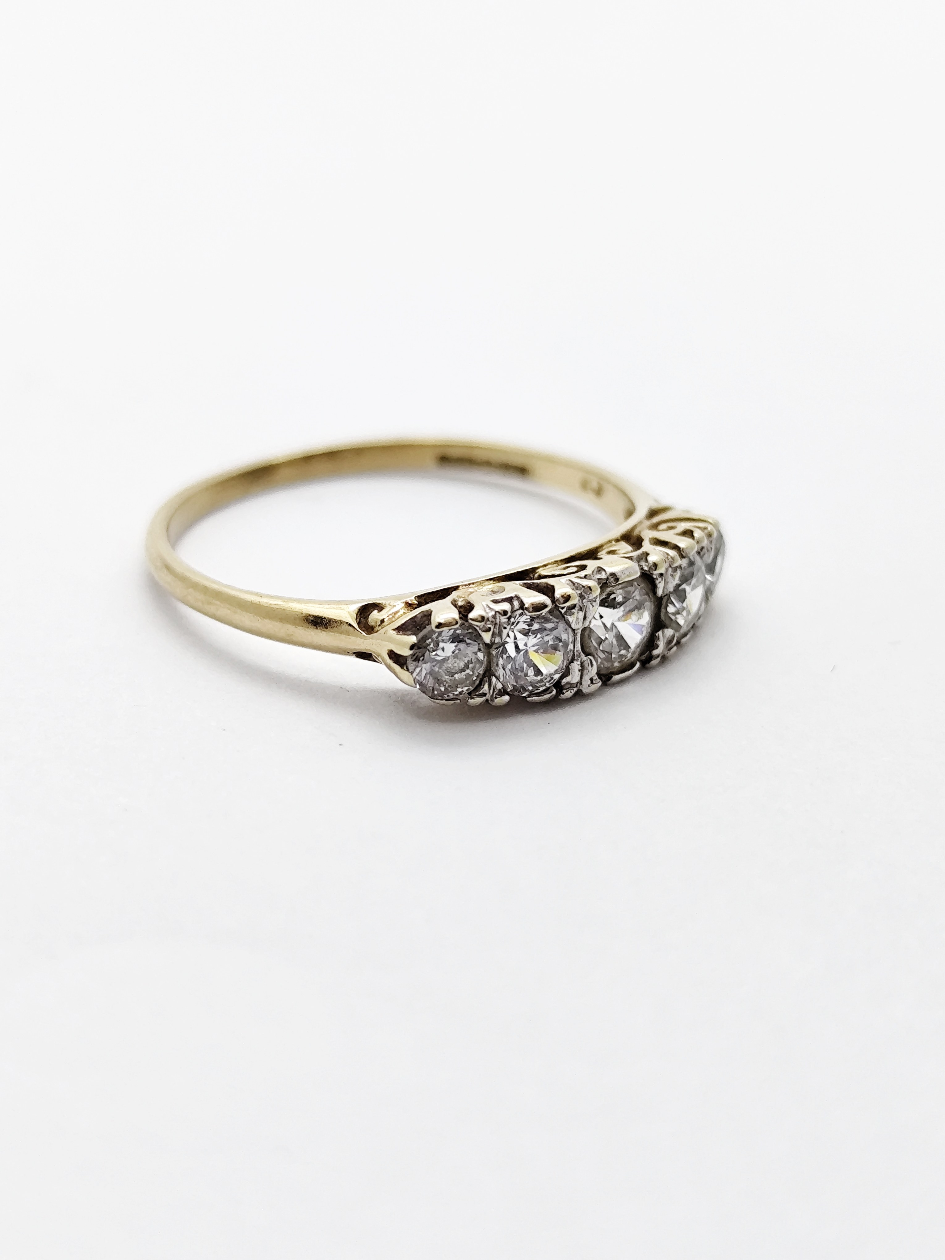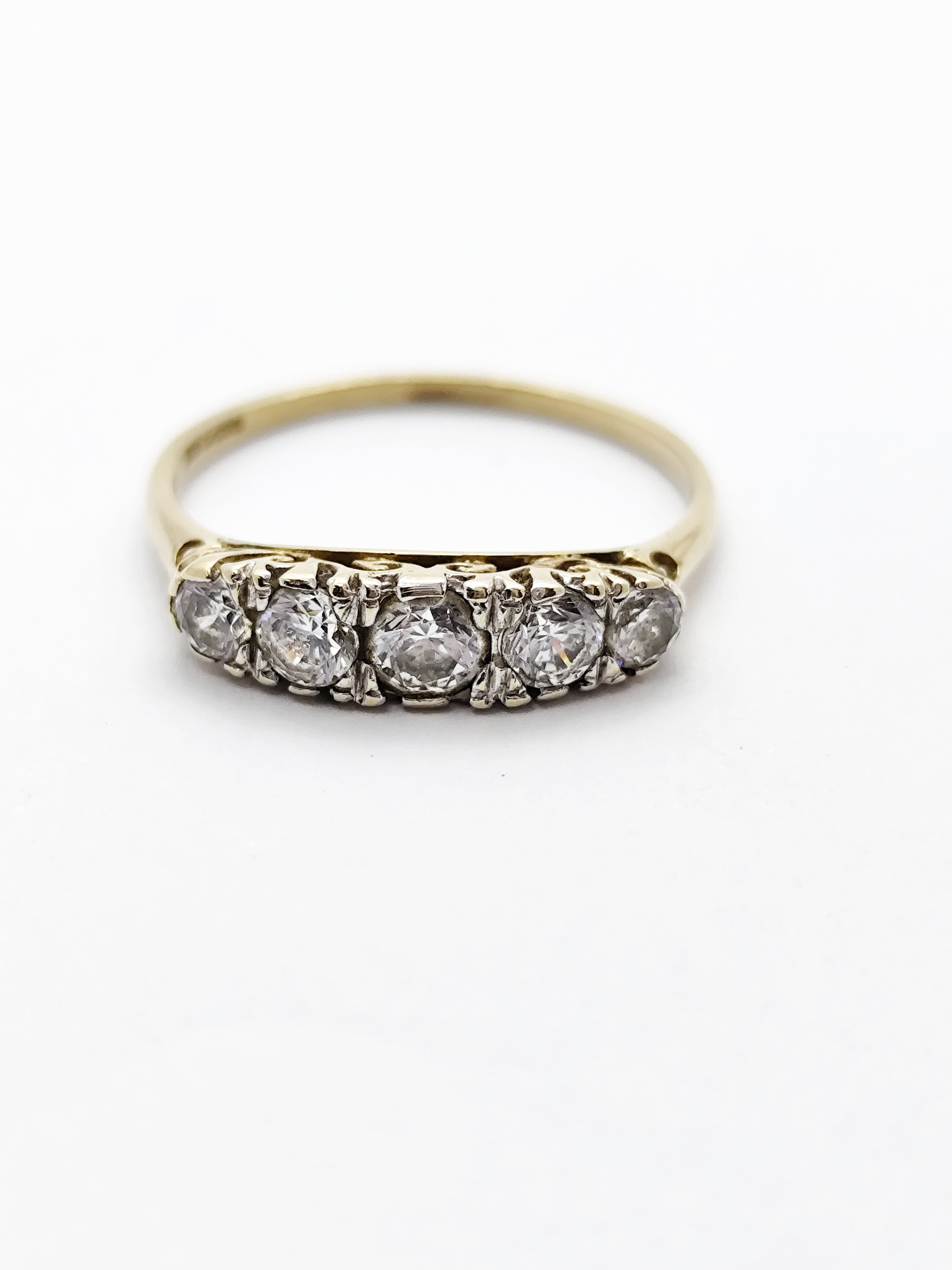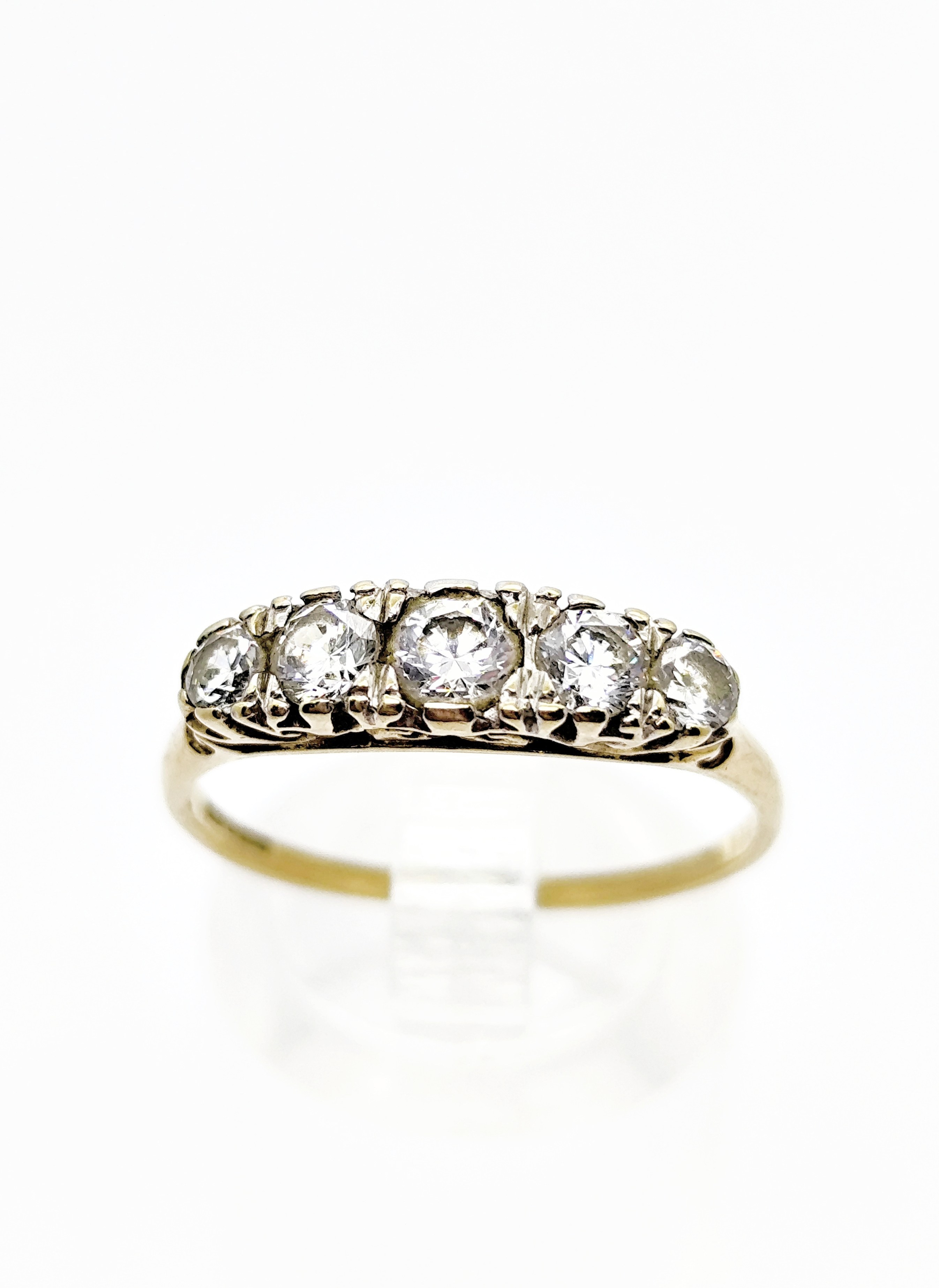 Złoty 375/9K pierścionek z białymi cyrkoniami w stylu Wiktoriańskim