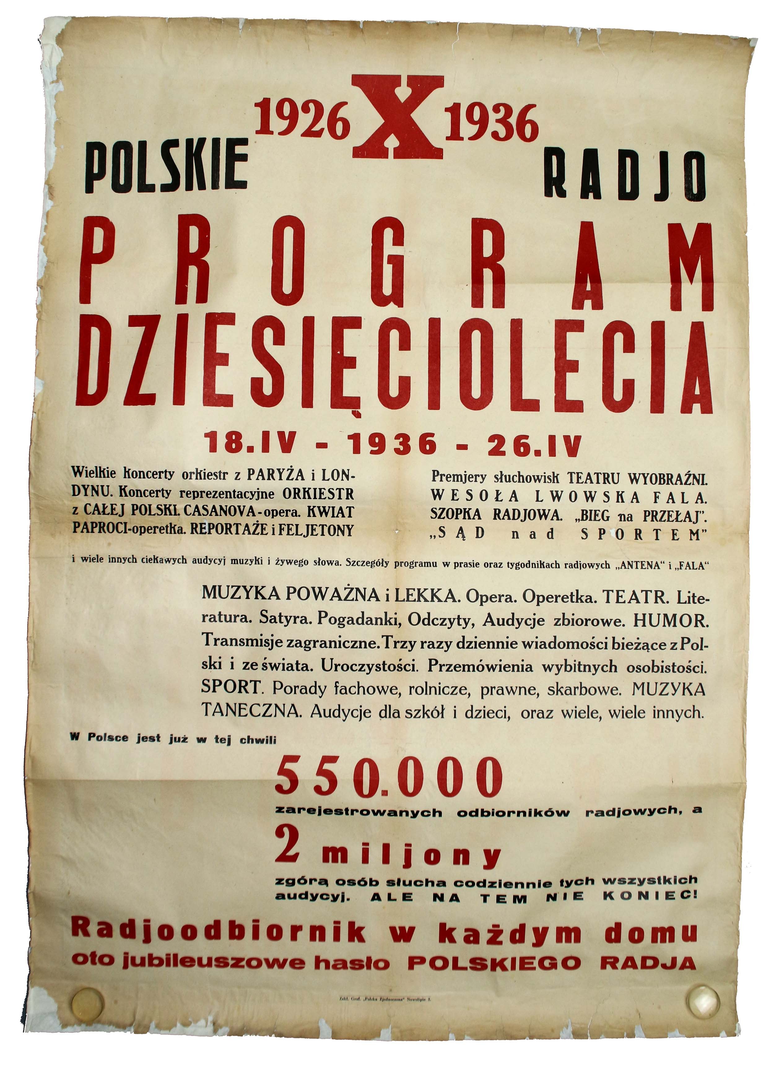 Plakat Polskie Radio 1926-1936. Program Dziesięciolecia. II RP.
