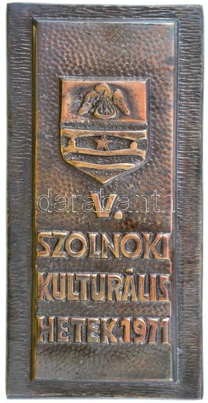1971. "V. Szolnoki Kulturális Hetek 1971" ezüstözött fém plakett, eredeti dísztokban (132x60mm) T:1-