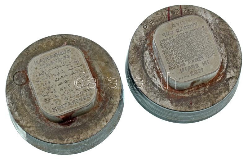 1982. "FIFA World Cup in Spain 1982 / Hungarian Football Federation" PP kivitelű Ag emlékplakett (a plakett hátoldalán a magyar focisták aláírásaival) verőtő pár, készült a plakett kibocsátásának idején a Pénzverőben / Hungary 1982. "FIFA World Cup in Spain 1982 / Hungarian Football Federation" proof design Ag commemorative plaque (with signatures of Hungarian football players on the back of the plaque) die pair, made at the time of the plaque's issuance at the Hungarian Mint