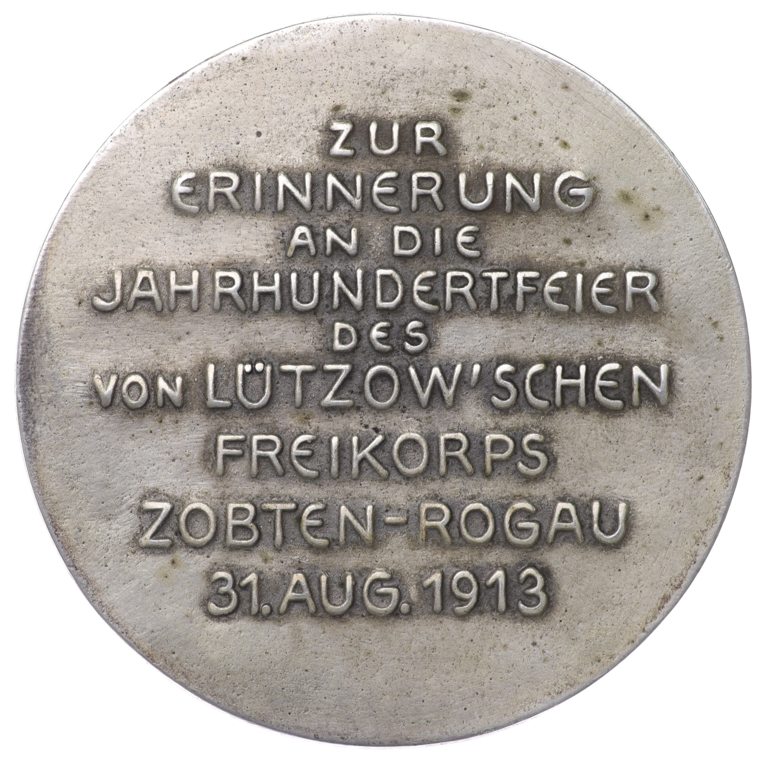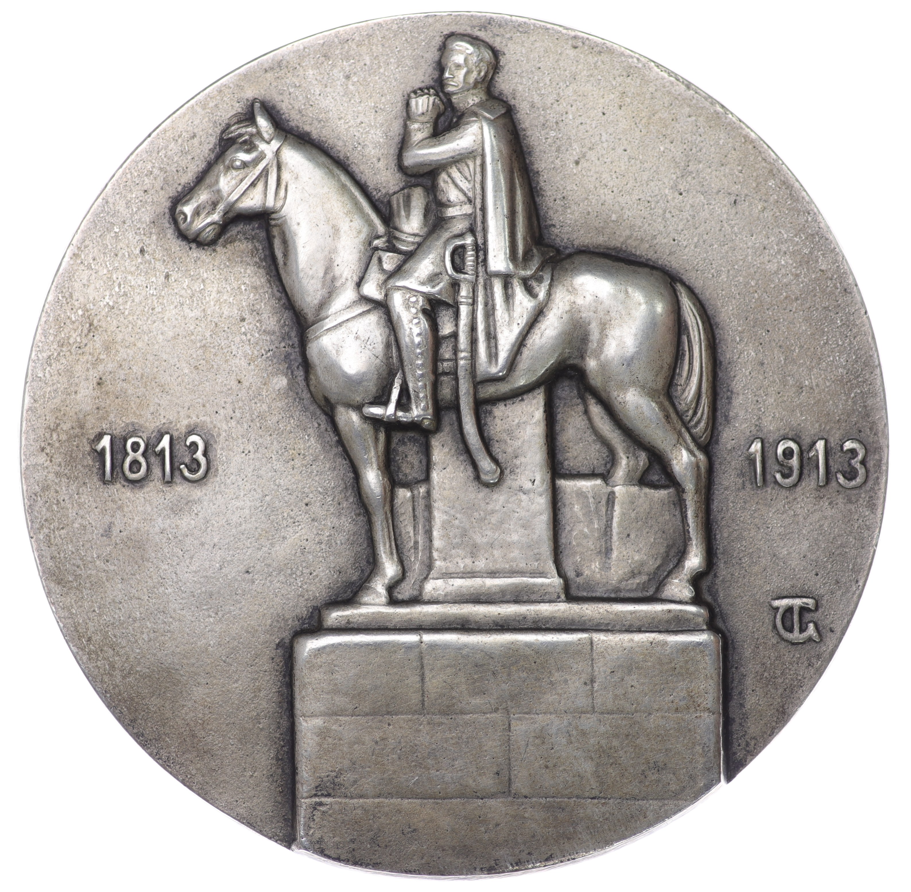 Medal srebrny odlewany 1913 Wybity dla upamiętnienia obchodów stulecia Freikorps von Lützow i inauguracji pomnika Ludwiga Adolfa Wilhelma Freiherra von Lützow