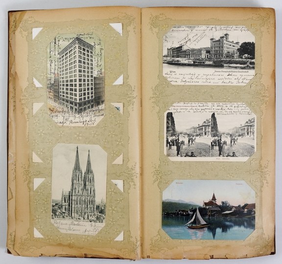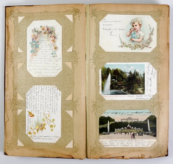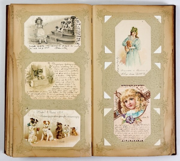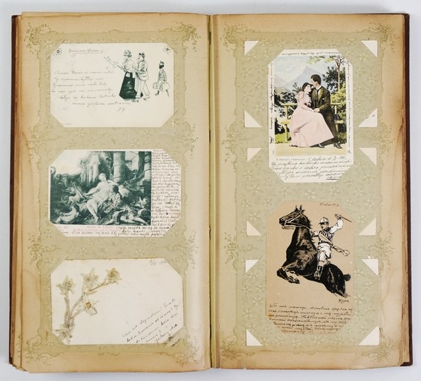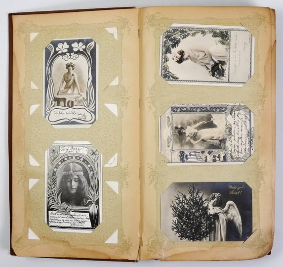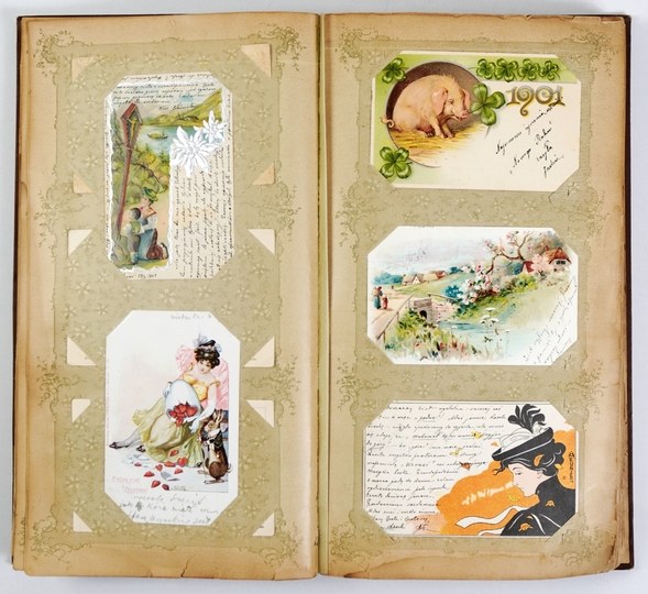 ALBUM secesyjny z 250 dawnymi pocztówkami, w tym 160 sprzed 1905.
