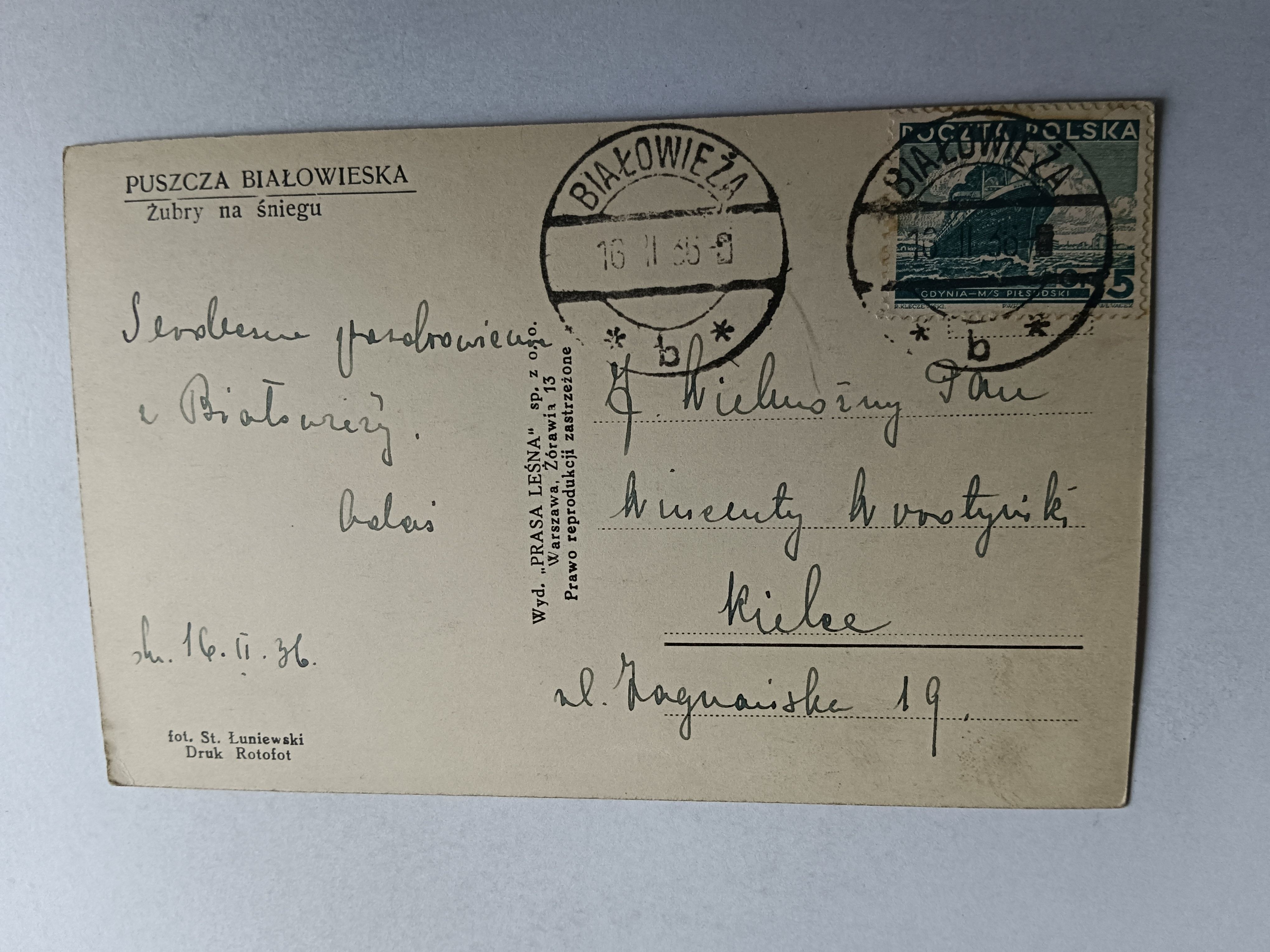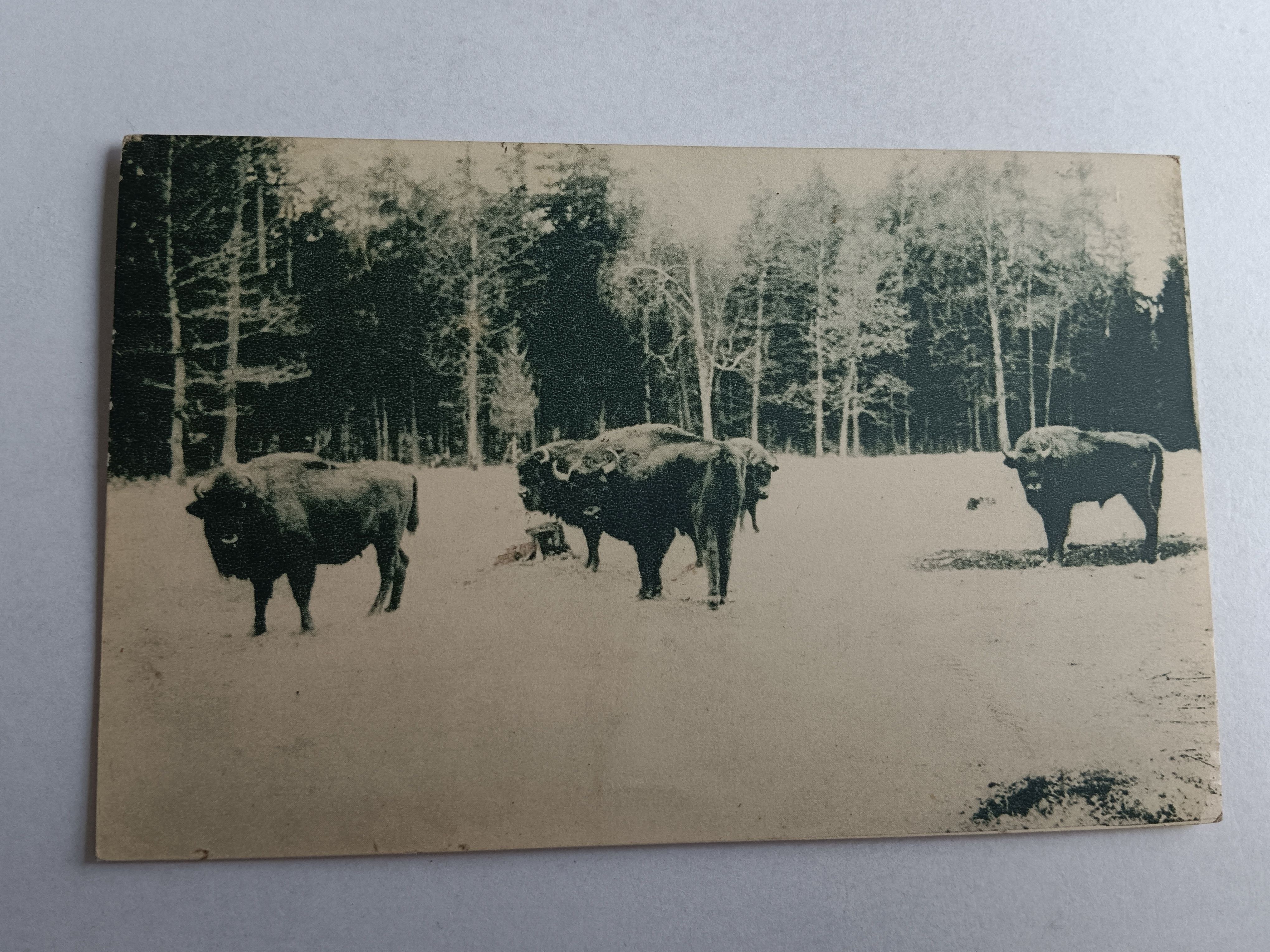 BIAŁOWIEŻA PUSZCZA BIAŁOWIESKA ŻUBR ŻUBRY, STEMPEL, ZNACZEK, 1936 R, WYD PRASA LEŚNA
