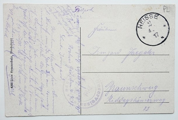 4706. Leon Rosenschein, Drohobycz. W korespondencji data: "14. 9. 17". Z korespondencją, bez znaczka. Stan dobry.