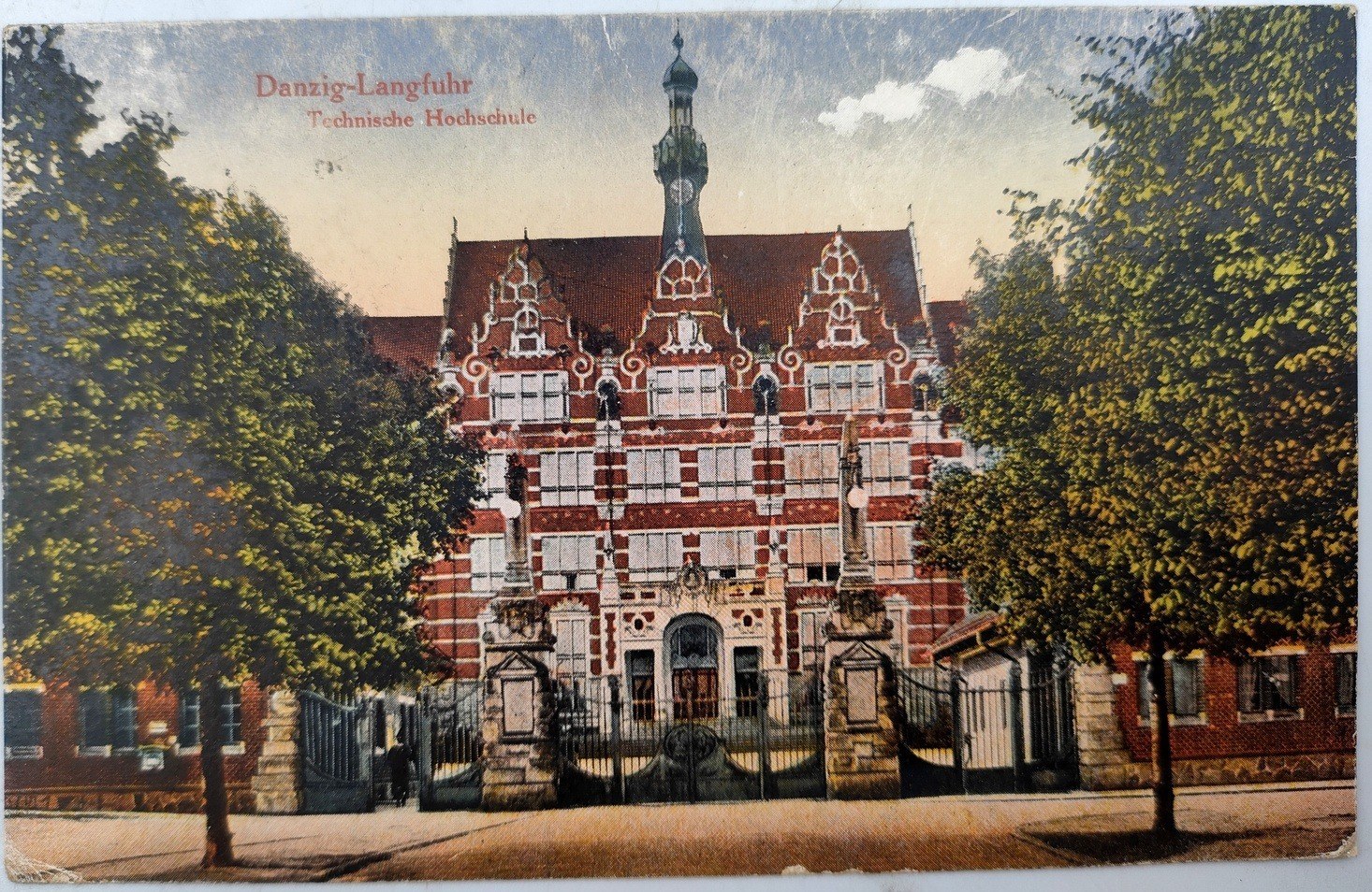 Pocztówka - Danzig - Langfuhr , Technische Hochschule - Gdańsk, Wrzeszcz - Politechnika Gdańska, pieczęć 1920 rok