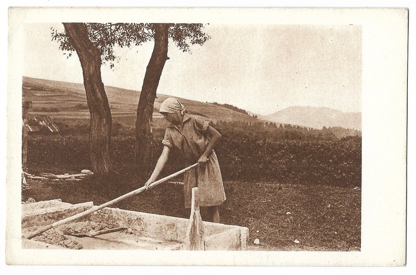 [HARCERSTWO]. Harcerki przy budowie Szkoły instruktorskiej: "Mięszanie zaprawy murarskiej".