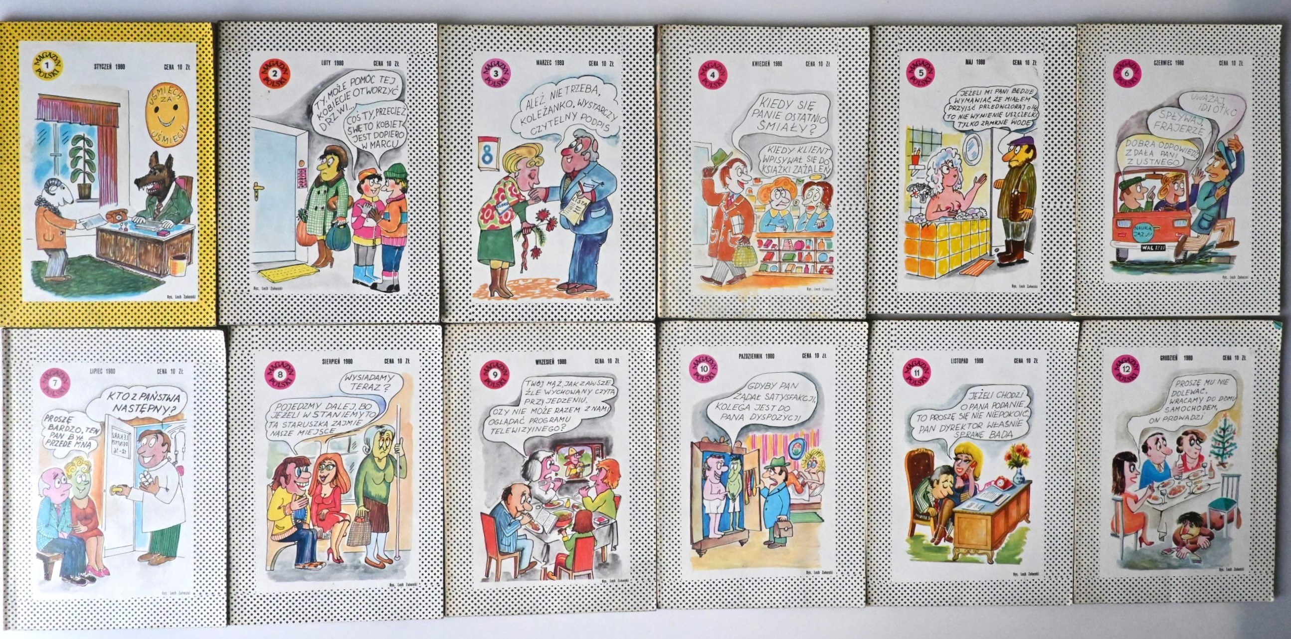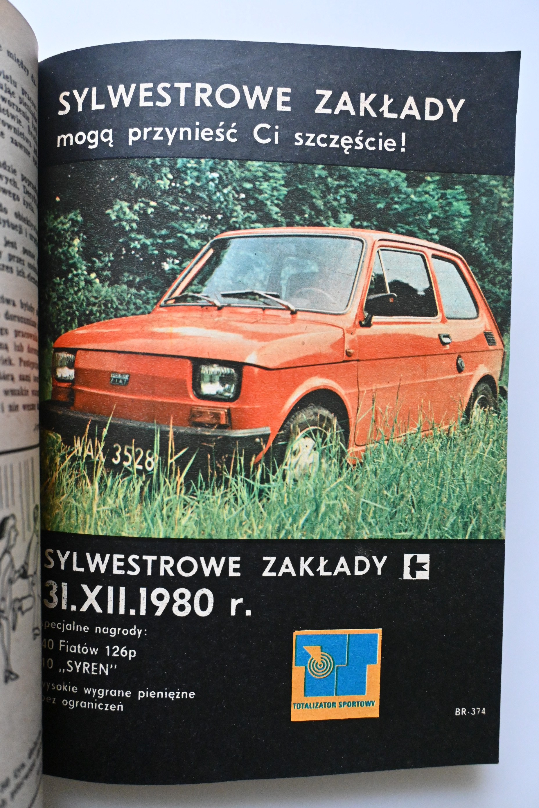 Warszawa, RSW „Prasa-Książka-Ruch”, 6 numerów x 128 stron, 6 numerów x 96 stron, wym. 14 x 20, oprawy broszurowe. Niewielkie przybrudzenia okładek, 1 egzemplarz z małym ubytkiem grzbietu, zakurzenia krawędzi. Krzyżówki częściowo zapisane. Kompletny rocznik Magazynu Polskiego nieoprawiony - rzadkie.