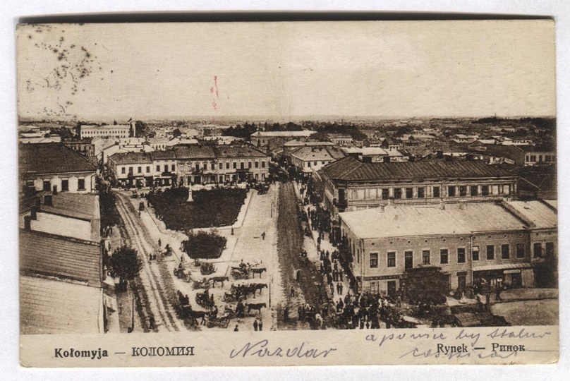 [KOŁOMYJA]. Kołomyja - Kolomyja [cyrylicą]. Rynek - Rynok [cyrylicą].