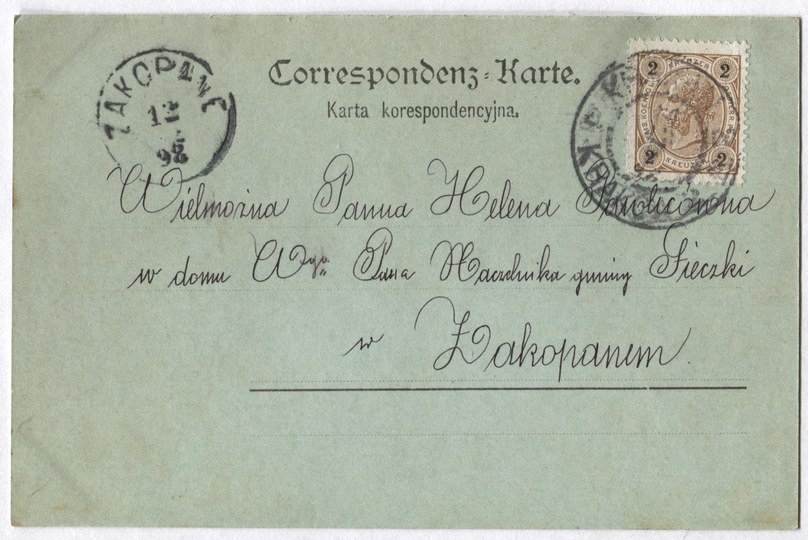 6841 bng R & J. D. [= Römmler & Jonas, Dresden]. Z korespondencją i znaczkiem. Data stempla: 12 XII 1898. Lekkie zagniecenia narożników - efekt przechowywania pocztówki w albumie, poza tym stan dobry.
