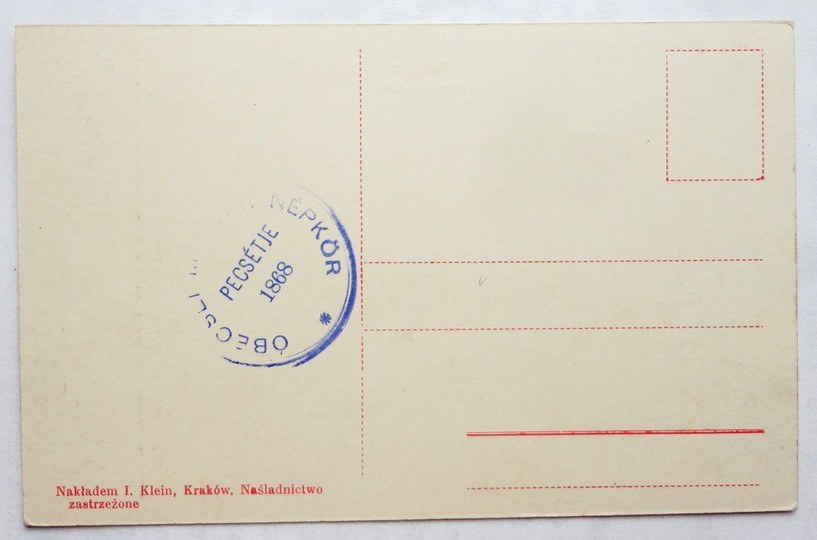 Nakładem I. Klein, Kraków. Po 1905. Bez korespondencji i znaczka. Na odwrocie piecz. Stan bardzo dobry.