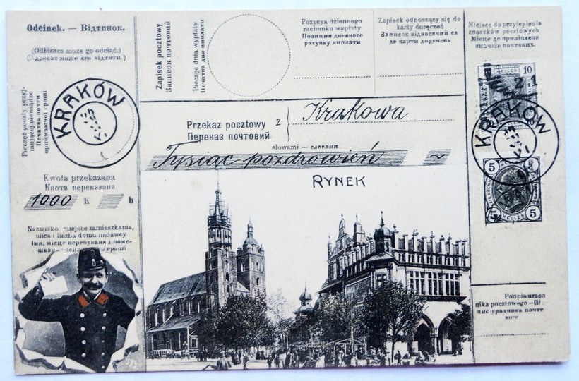 [KRAKÓW]. Przekaz pocztowy z Krakowa. Tysiąc pozdrowień.