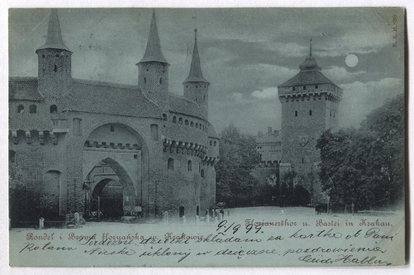 [KRAKÓW]. Rondel i Brama floryańska w Krakowie. Florianerthor u. Bastei in Krakau. [Poczta księżycowa].