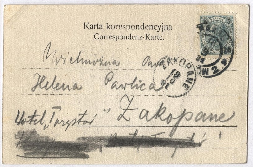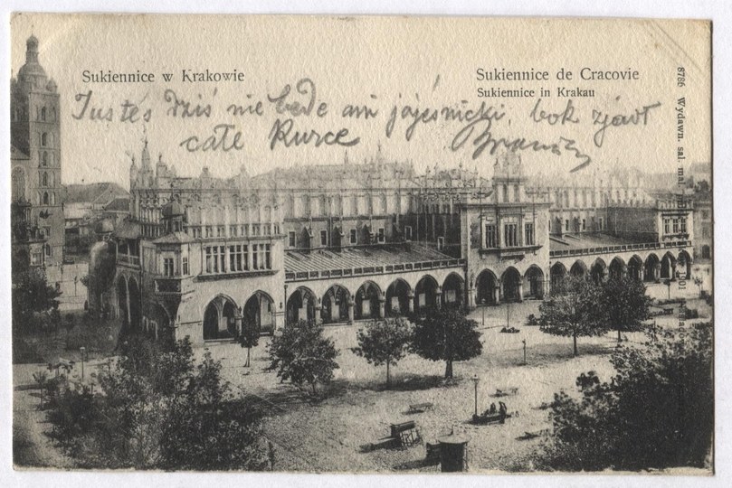Wydawn. sal. mal. polsk. Kraków 1901. Z korespondencją i znaczkiem. Część tekstu zakreslona ołówkiem. Daya stampla: 19 X 1901. Niewielkie zagięcia narożników - efekt przechowywania w albumie.