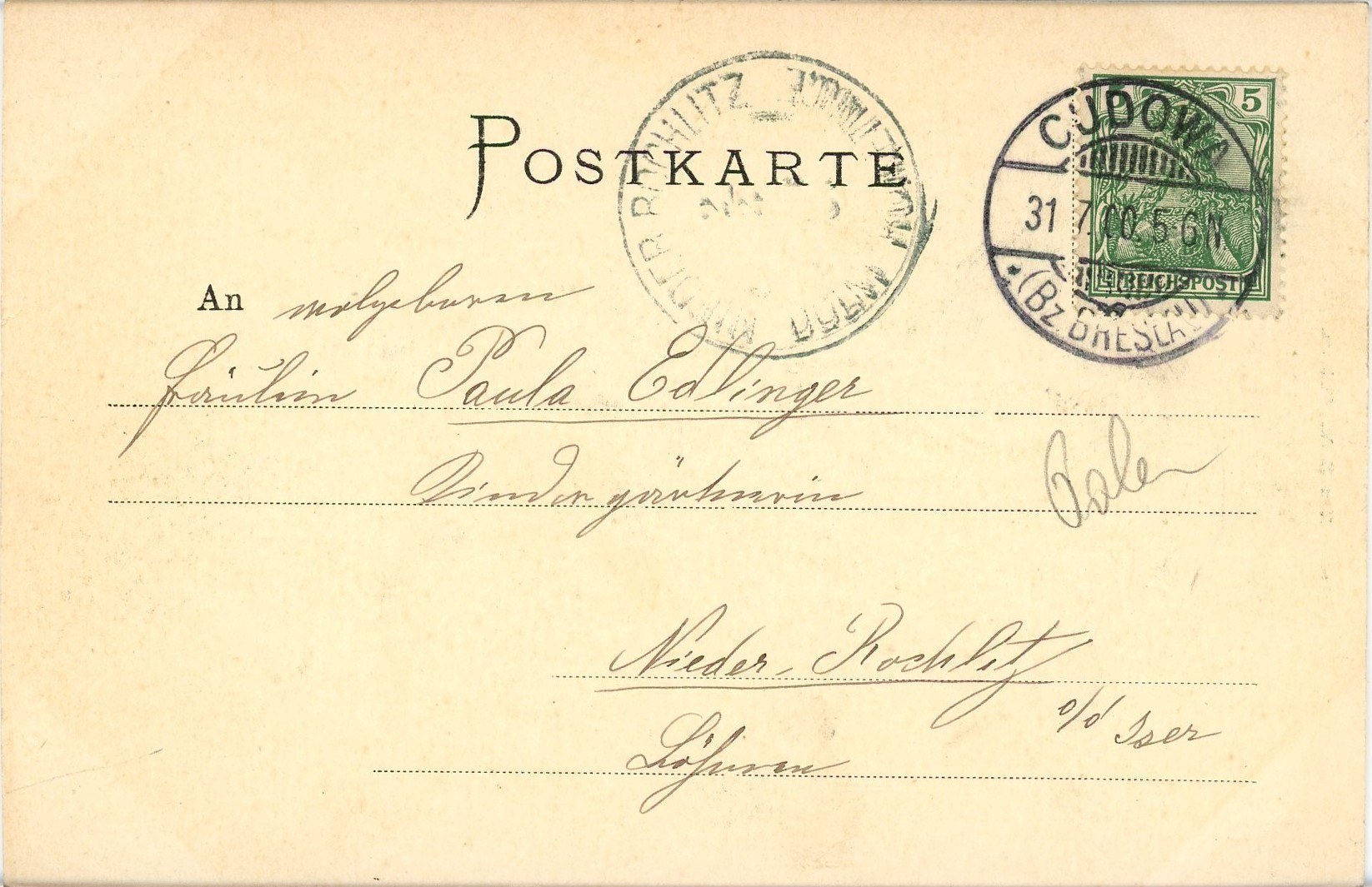 Nakł. Max Mader, Kudowa. Kartka zapisana, dat. 31.7.1900 r. Stan bardzo dobry.