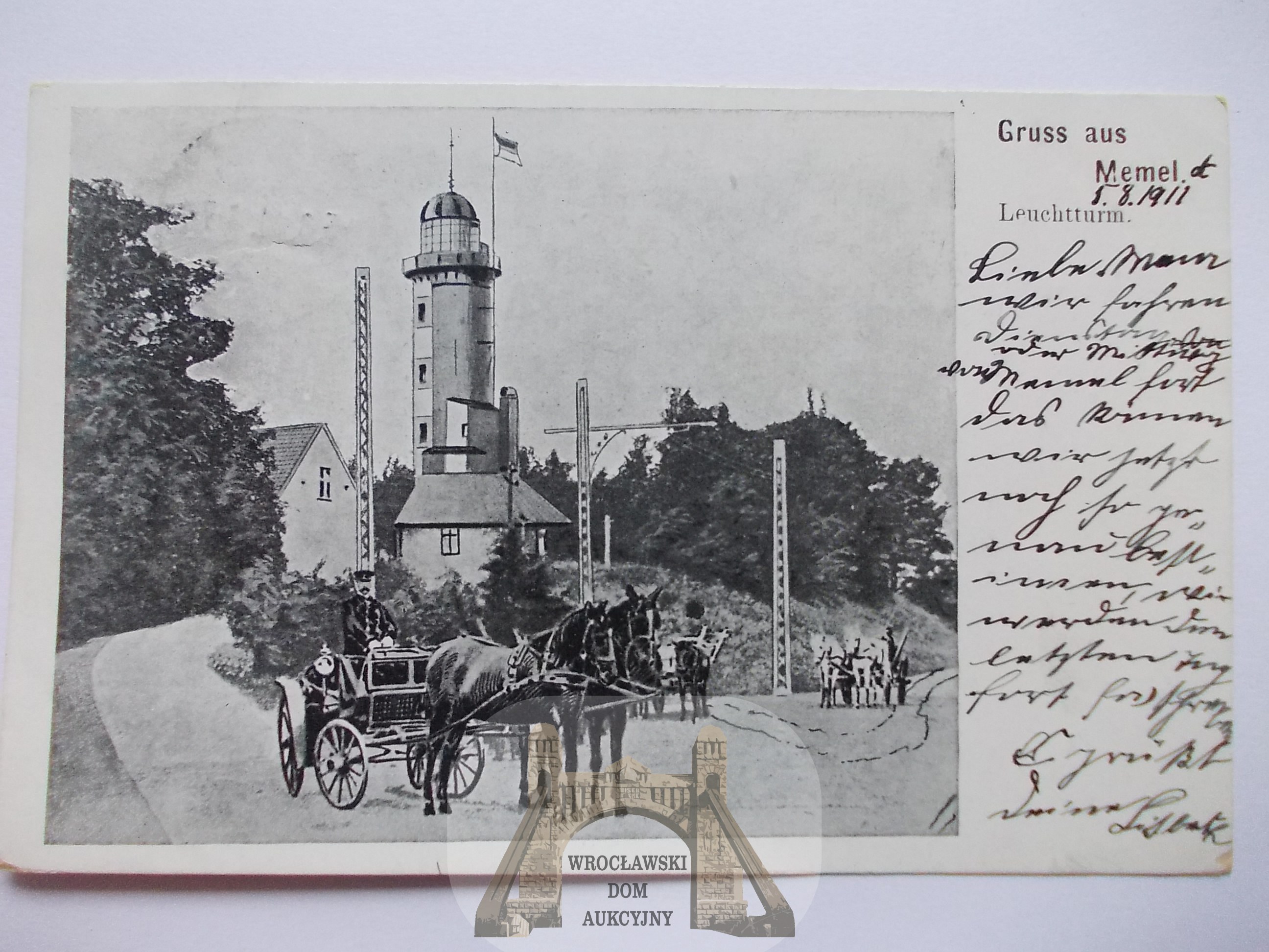 Litwa, Memel, Klaipėda, Kłajpeda, latarnia morska, dorożka, 1911