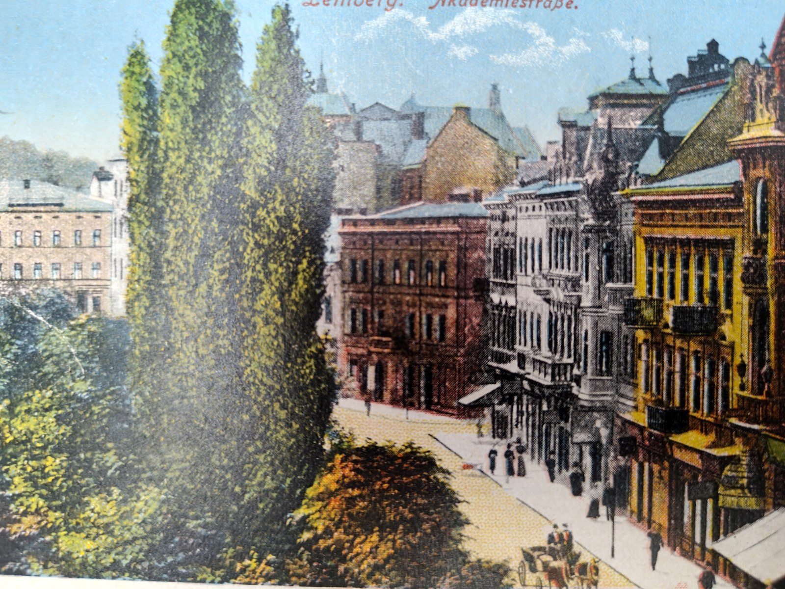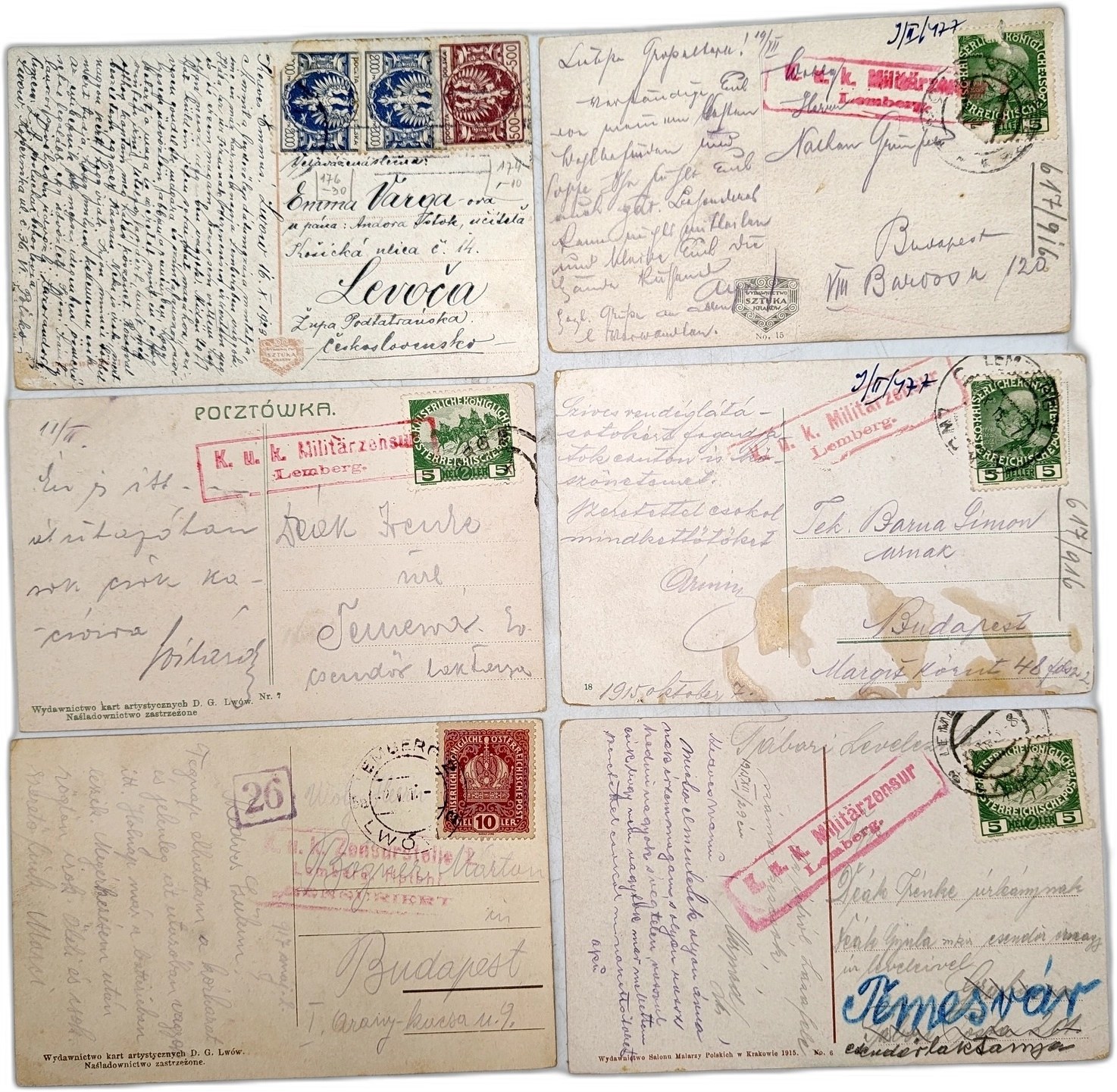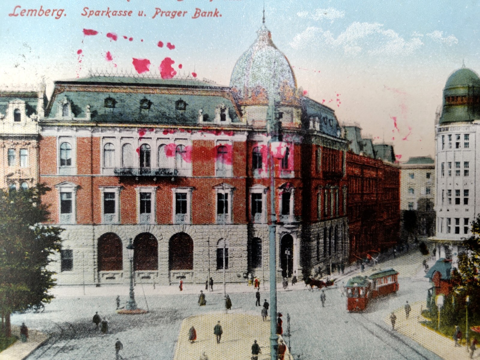 Lot 6 pocztówek : Lwów - Lemberg - Ulica Akademicka, Kasa Oszczędności i Bank Polski