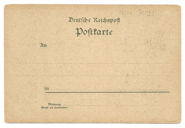 Kunstanstalt J. Miesler, Berlin S. 5098. Bez korespondencji i znaczka. Nie po 1905. Pocztówka z długą linią adresową. Niewielkie otarcia i załamania narożników.