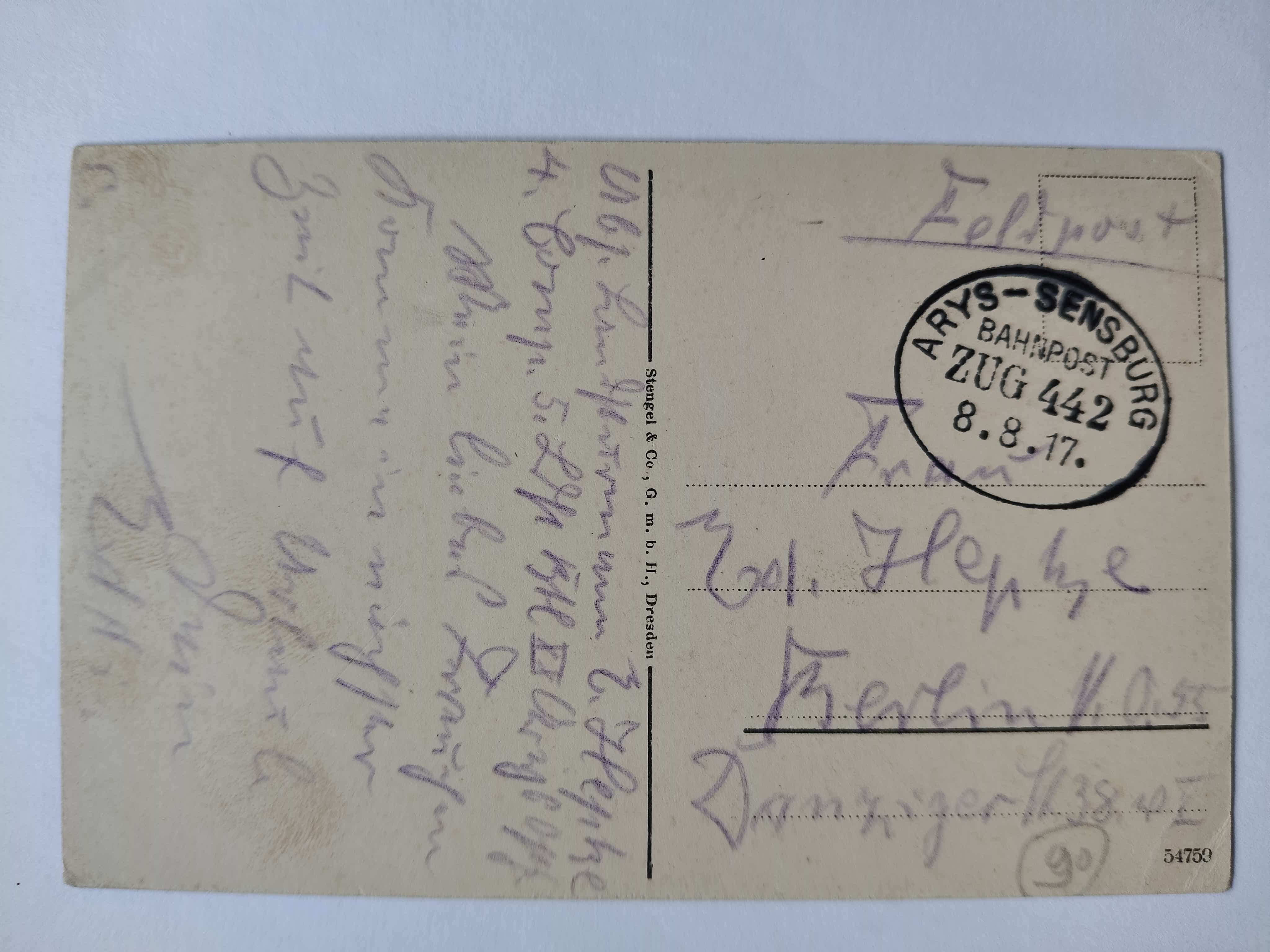 Przedmiotem licytacji jest oryginalna pocztówka. Stan zachowania oraz obieg widoczny na fotografiach, brak wad ukrytych.
