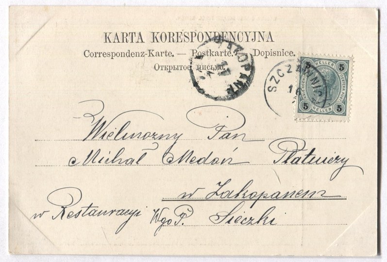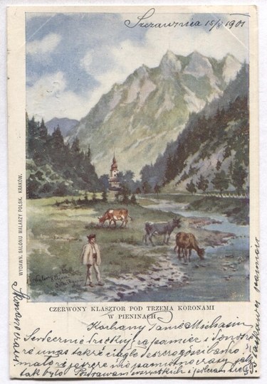 Wydawn. Salonu Malarzy Polsk. Kraków. Reprodukcja obrazu Walerego Eliasza-Radzikowskiego. Z korespondencją i znaczkiem. Data listu: 15 VIII 1901. Zagniecenia narożników - efekt przechowywania pocztówki w albumie, poza tym stan dobry.