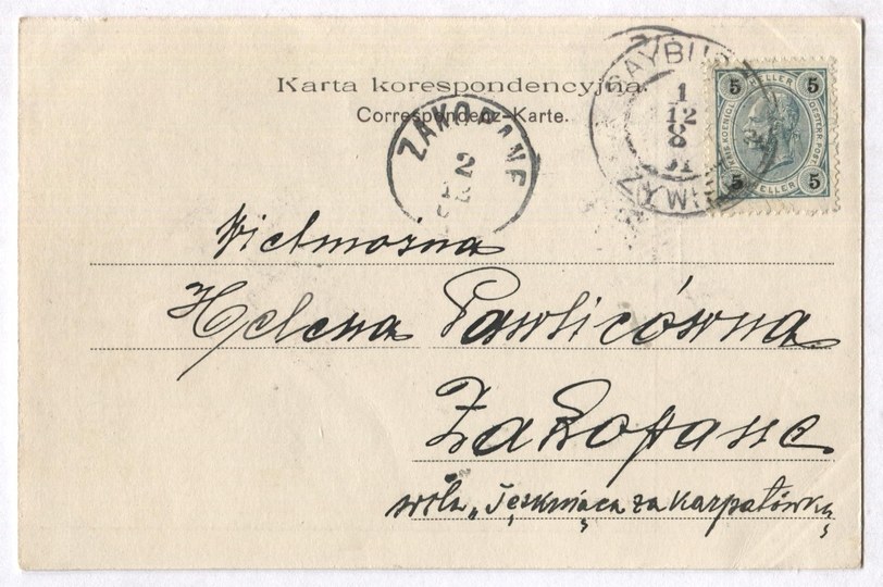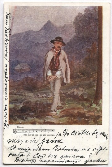 Bez danych wydawniczych. Reprodukcja obrazu nieznanego autorstwa. Z korespondencją i znaczkiem. Data stempla: 1 XII 1901. Niewielkie zagięcia narożników; efekt przechowywania pocztówki w albumie.