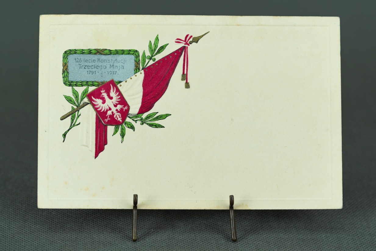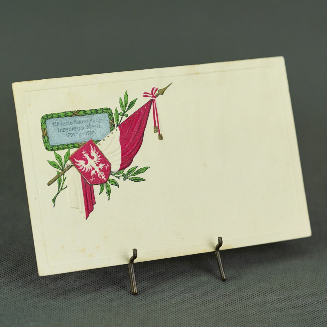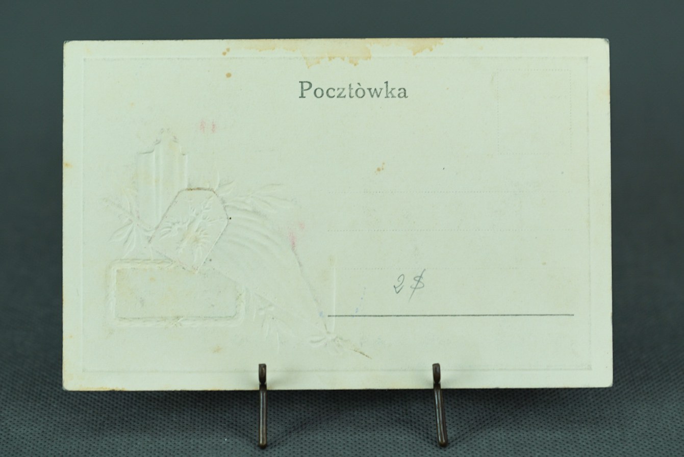 Stan dobry: pofalowania pocztówki, zagięcie narożnika, nieznaczne zabrudzenia.