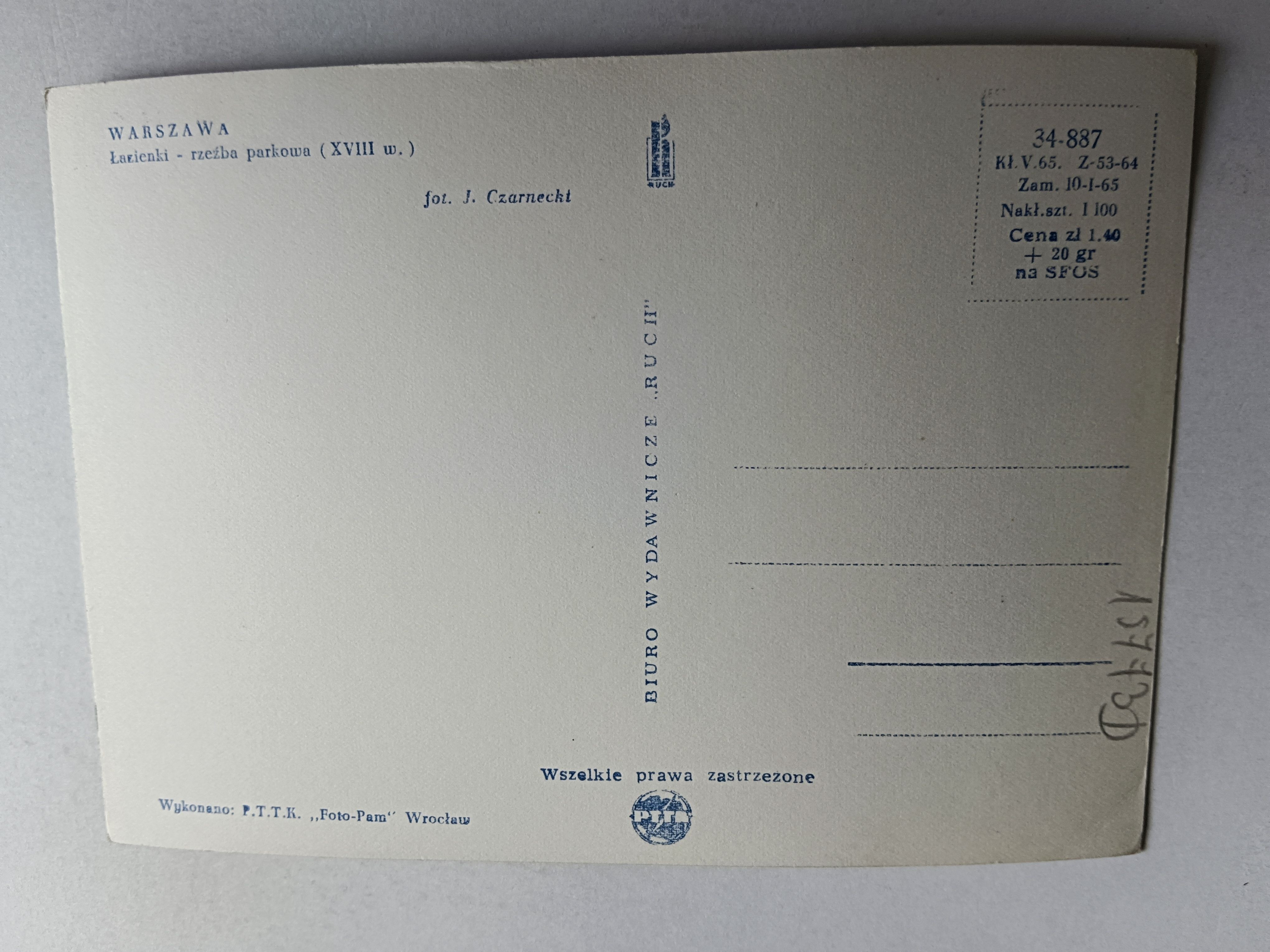 POCZTÓWKA PRL WARSZAWA ŁAZIENKI RZEŹBA PARKOWA
