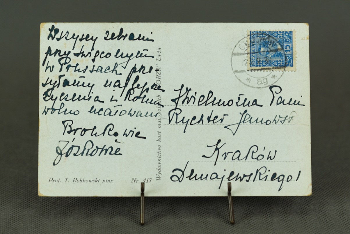 Adresatem pocztówki jest Bronisława Rychter-Janowska.