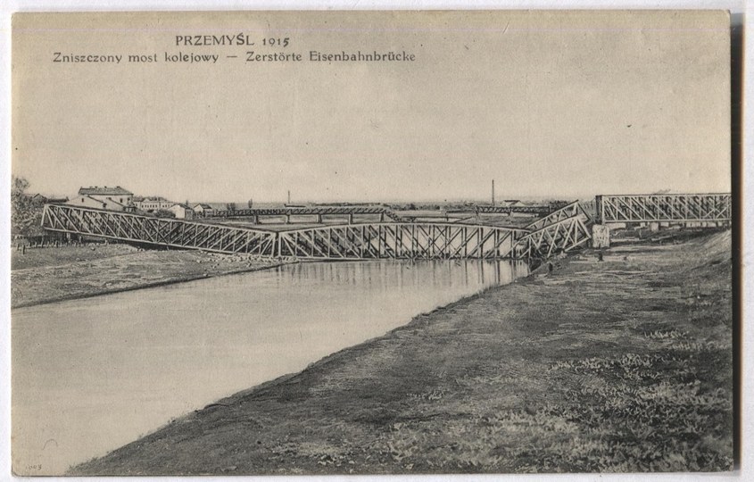 [PRZEMYŚL]. Przemyśl 1915. Zniszczony most kolejowy - Zerstörte Eisenbahnbrücke.