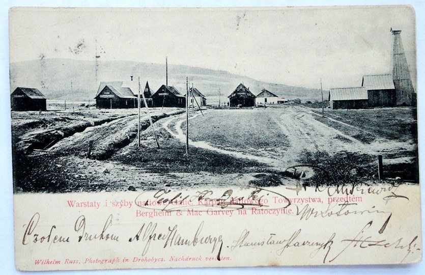 [RATOCZYN]. Warstaty i szyby naftowe Galic. Karpat. naftowego Towarzystwa, przedtem Bergheim & Mac Garvey na Ratoczynie.