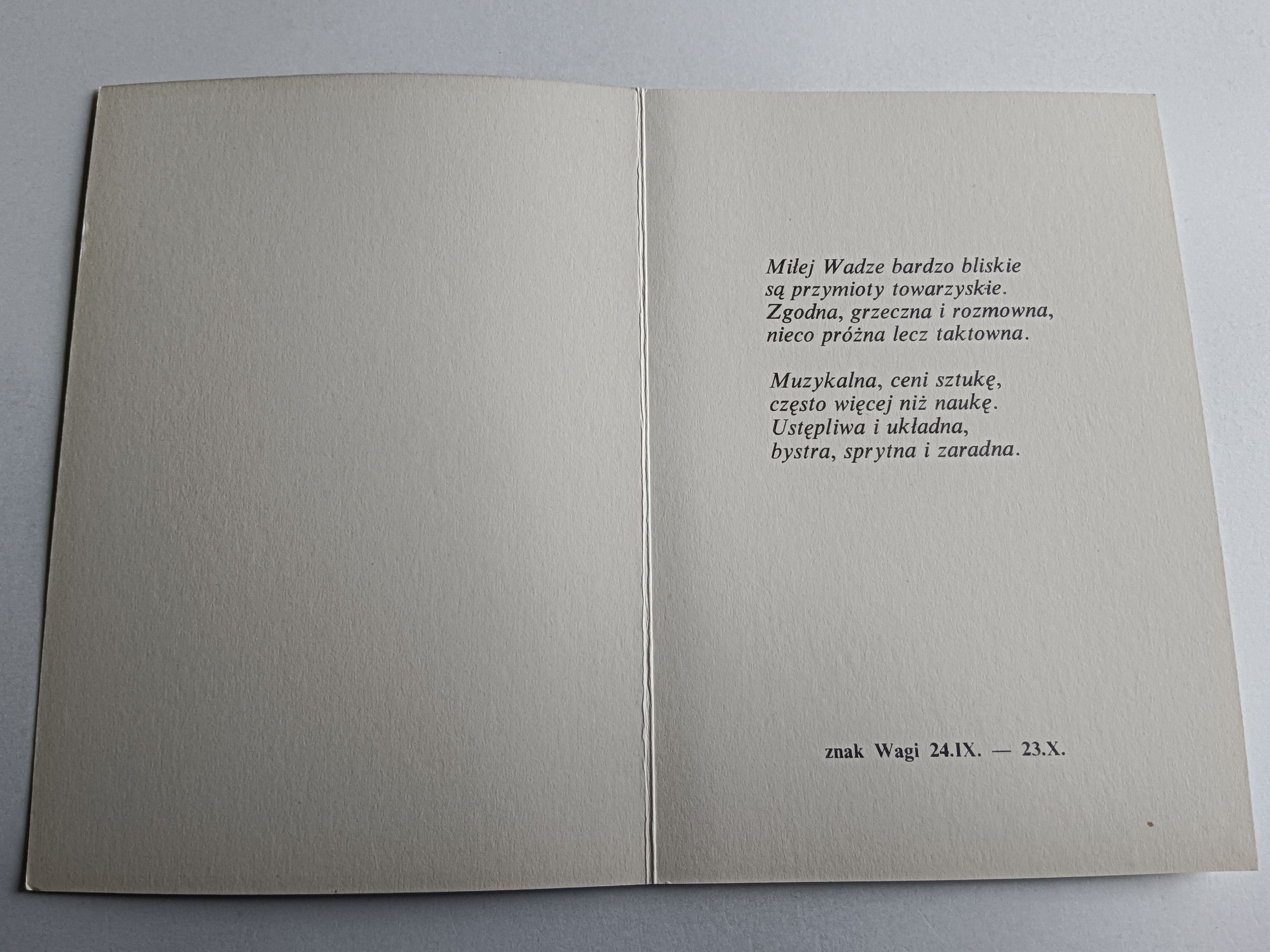 ROZKŁADANKA HOROSKOP ZODIAK ZNAK ZODIAKU WAGA, WIERSZ LESZEK SZUMAN, RYS ANDRZEJ MACIEJEWSKI