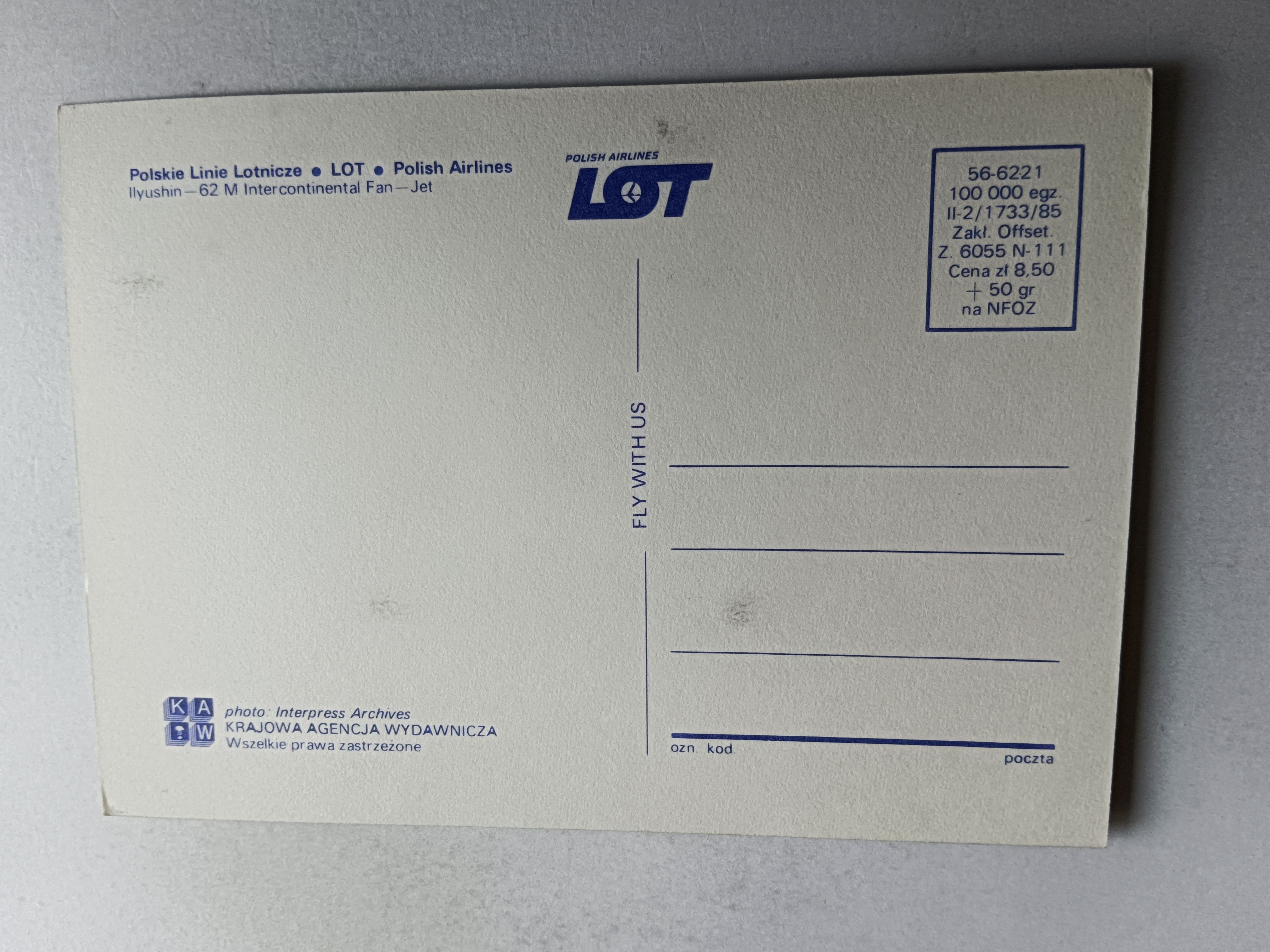 SAMOLOT LOT ILYUSHIN 62 M FAN JET, KAW