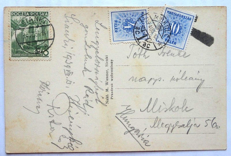 Nakł. M. Wiesner, Sianki. Z korespondencją dat.: "1939 VIII 13", trzema znaczkami i dwoma stemplami pocztowymi. Stan dobry.