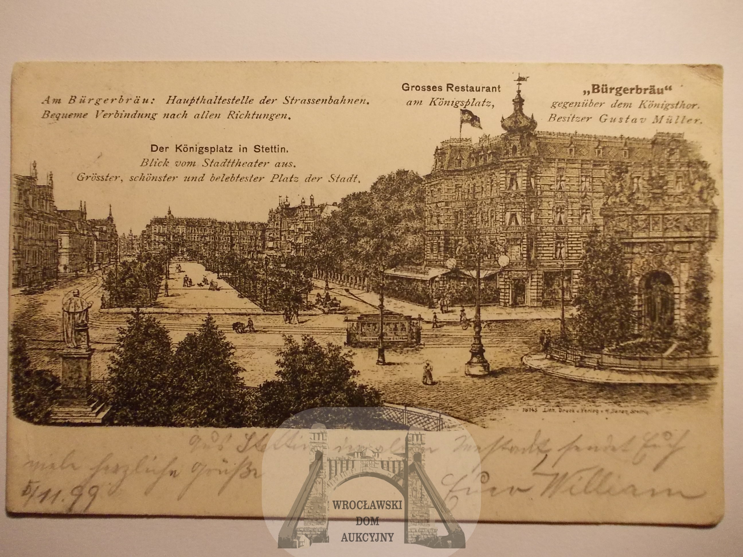 Szczecin, Stettin, plac Królewski, ciekawa litografia, 1899
