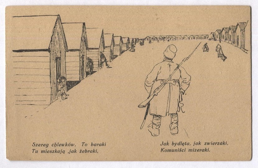 SZEREG chlewków. To baraki / Tu mieszkają jak żebraki, / Jak bydlęta, jak zwierzaki, / Komuniści mizeraki.