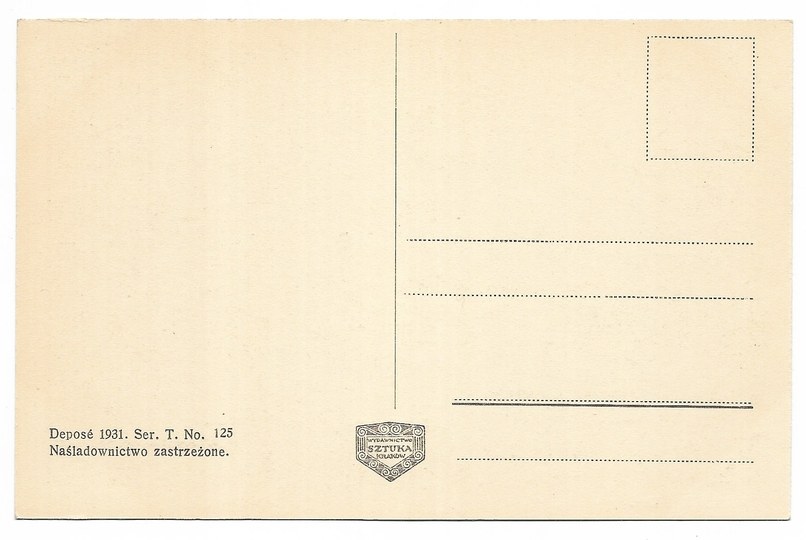 Wydawnictwo Sztuka, Kraków. Deposé 1931. Ser. T. 125. Bez korespondencji i znaczka. Stan dobry.