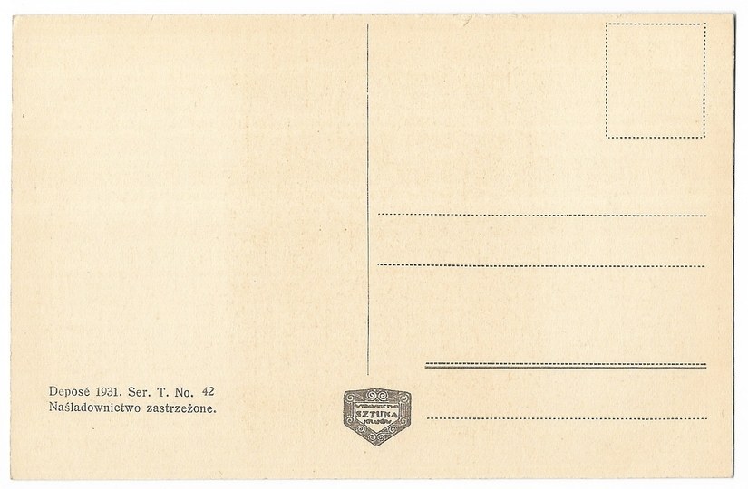Wydawnictwo Sztuka, Kraków. Deposé 1931. Ser. T. No. 42. Bez korespondencji i znaczka. Stan bardzo dobry.