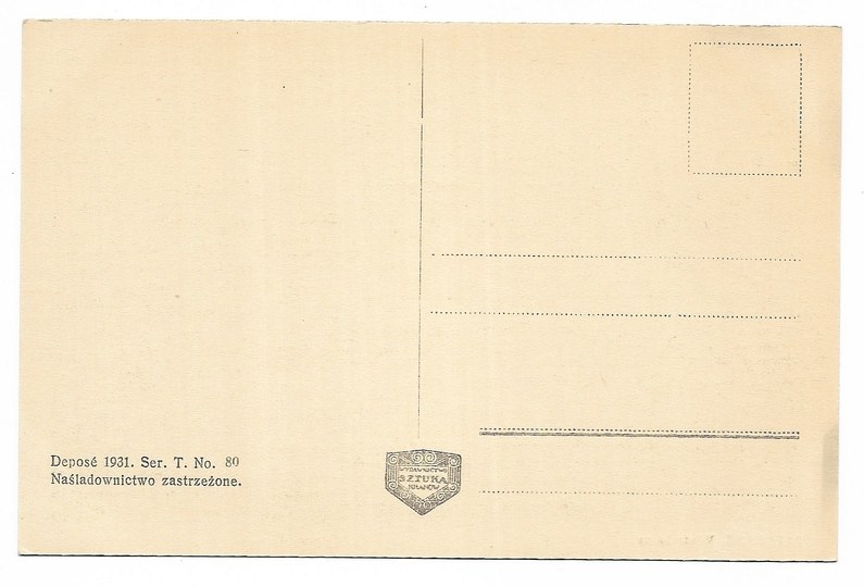 Wydawnictwo Sztuka, Kraków. Deposé 1931. Ser. T. No. 80. Bez korespondencji i znaczka. Stan bardzo dobry.