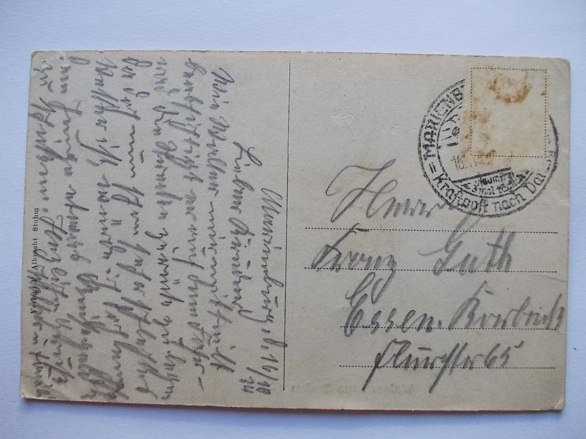 Przedmiotem licytacji jest oryginalna pocztówka. Stan zachowania oraz obieg widoczny na fotografiach, częściowo rozwarstwiona, brak wad ukrytych.