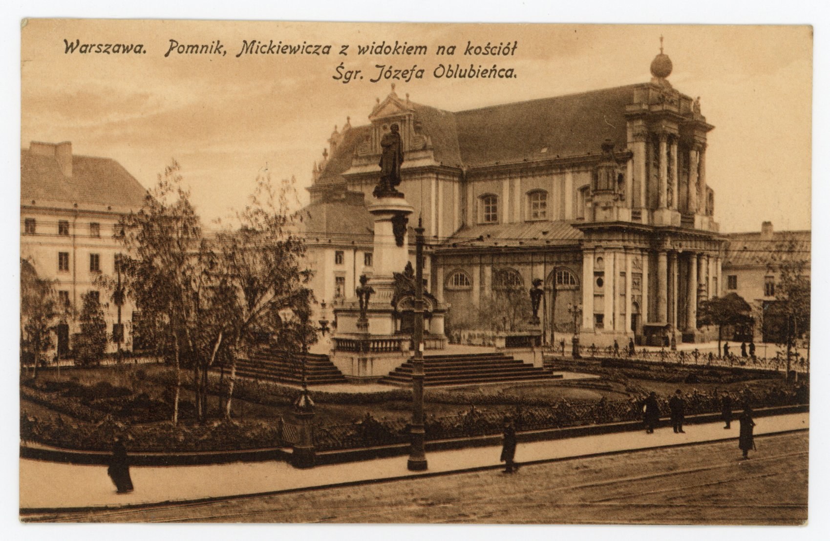 Warszawa - Pomnik Mickiewicza z widokiem na kościół Św. Józefa Oblubieńca