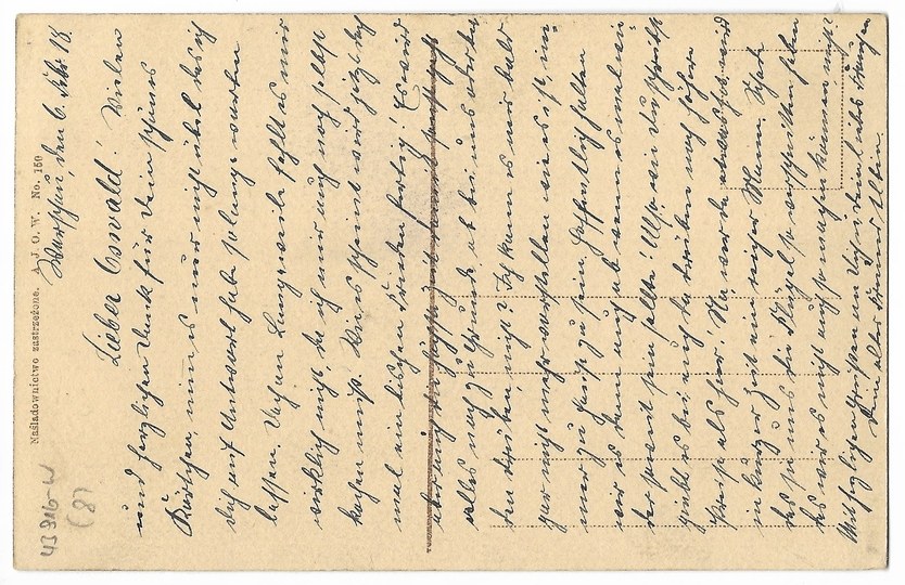 A.J.O.W. [= Ostrowski A.J., Warszawa]. No. 150. Z korespondencją, bez znaczka. Data listu 6 II 1918. Stan bardzo dobry.