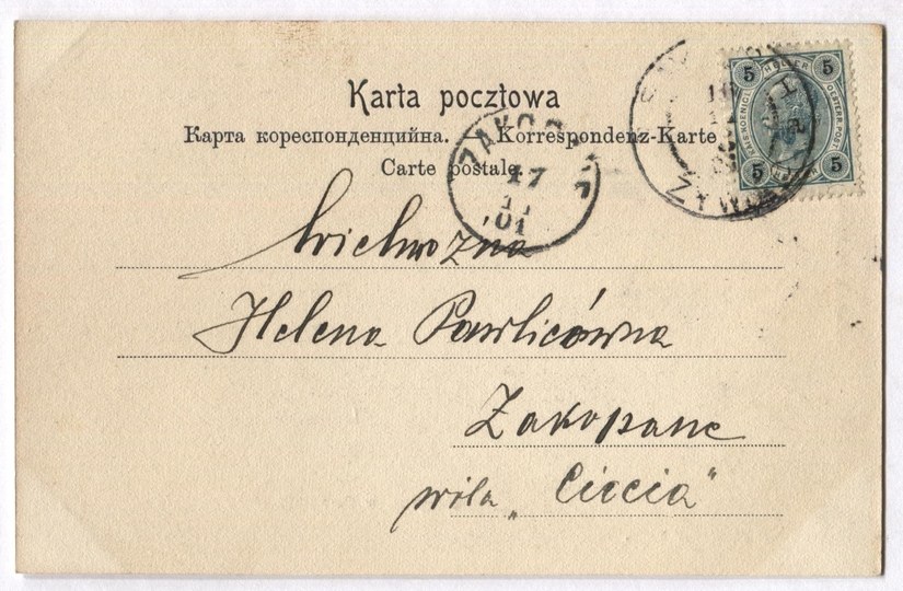 Nakład: S. W. Niemojowski, Lwów. Światłodruk "Eureka", Lwów. Kompozycja Kajetana Saryusza-Wolskiego. Z korespondencją i znaczkiem. Data stempla: 27 XI 1901. Drobne zaplamienia, niewielkie zagniecenia narożników - efekt przechowywania w albumie.