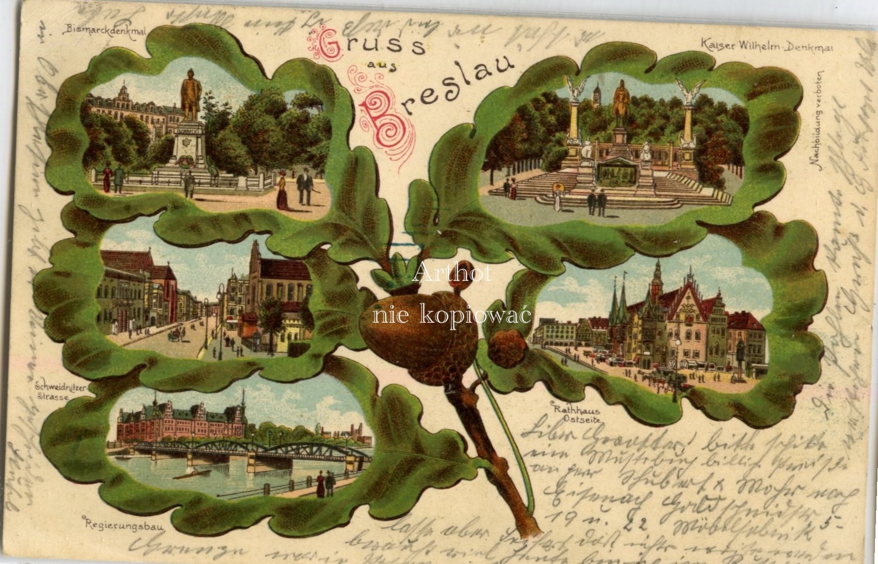 Wrocław, Breslau, Gruss aus …(liście dębu z widokami miasta)
