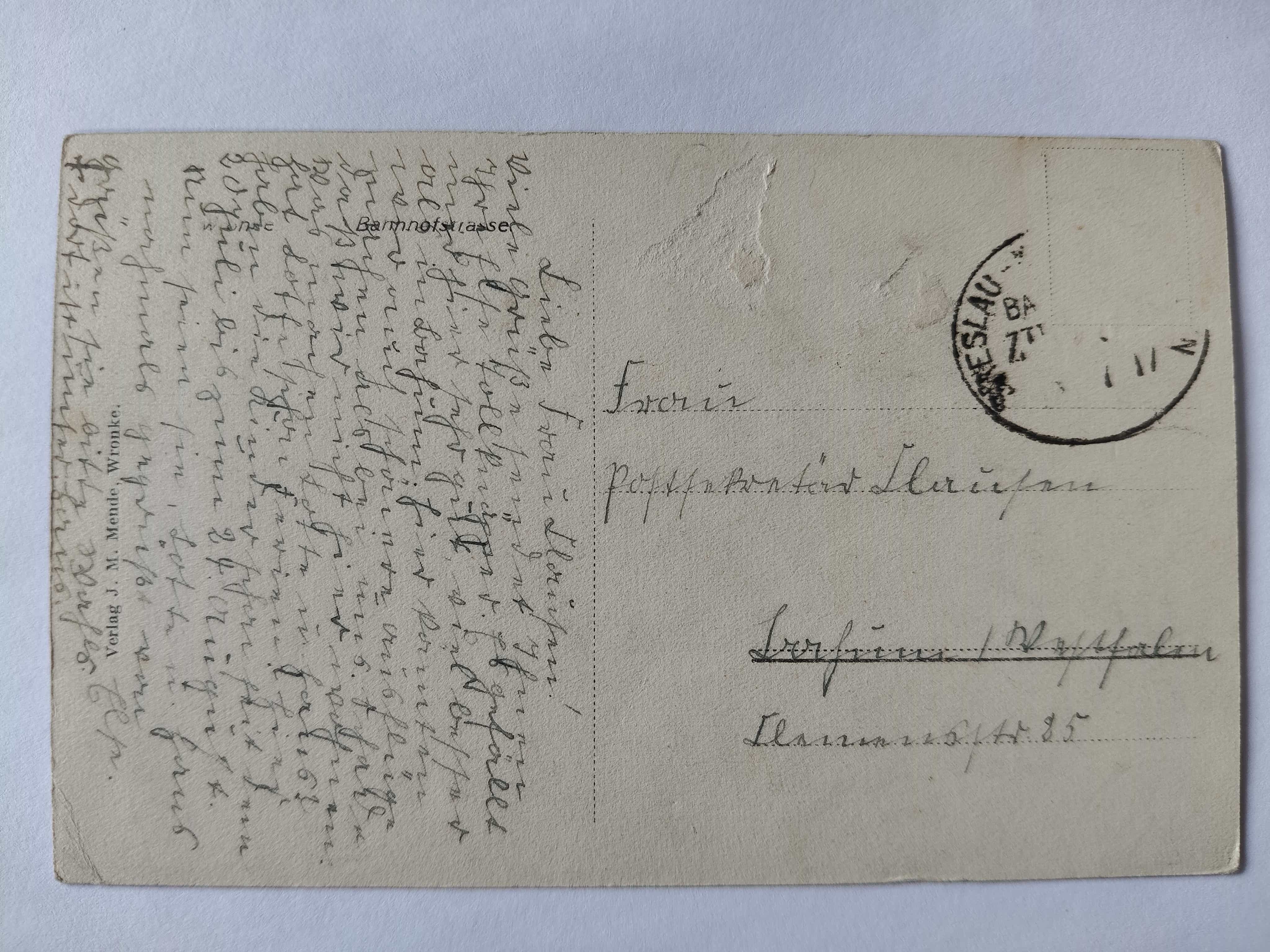 Przedmiotem licytacji jest oryginalna pocztówka. Stan zachowania oraz obieg widoczny na fotografiach, niewielkie wydarcie powierzchni rewersu, brak wad ukrytych.