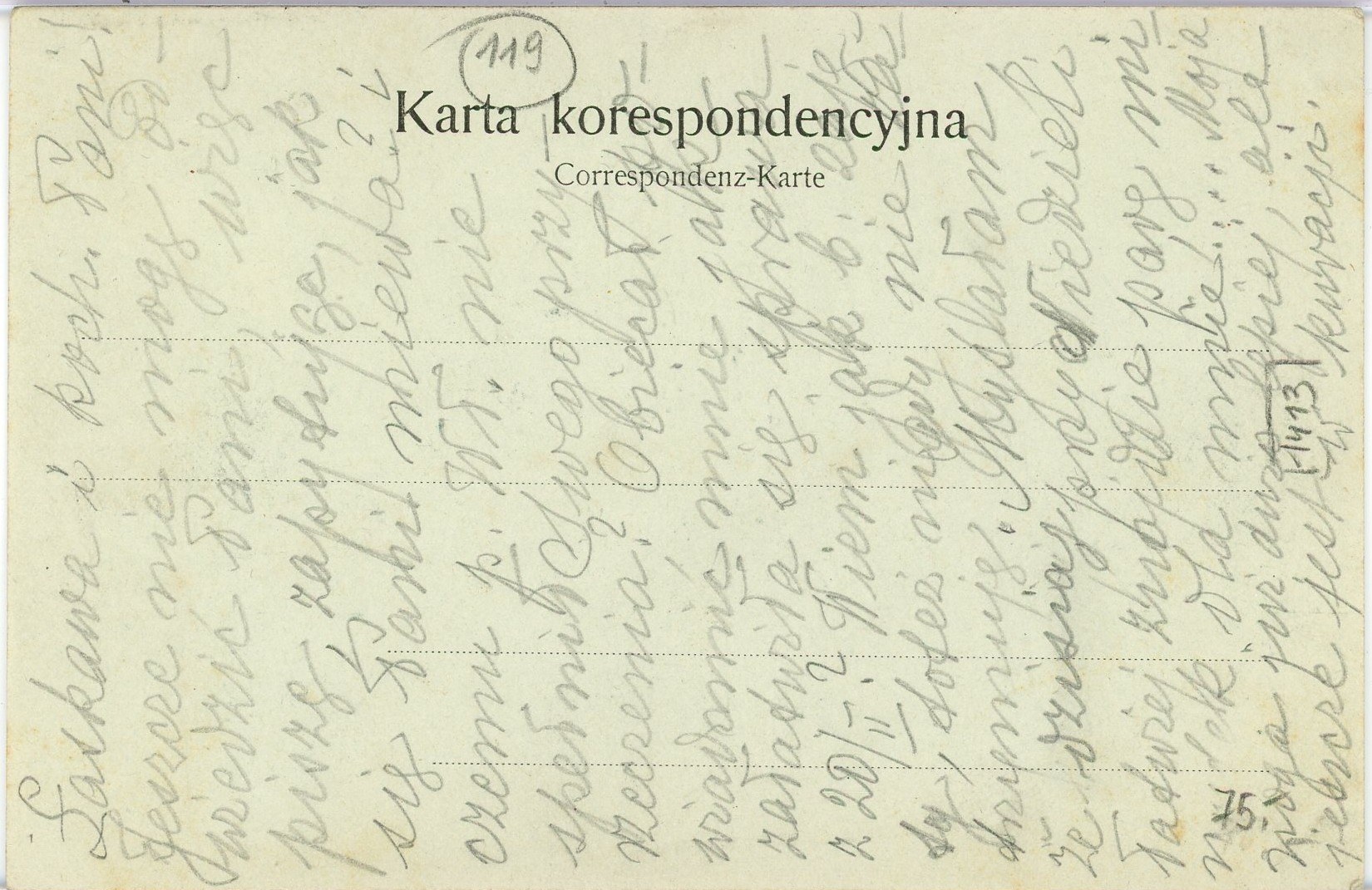 Nakł. J. F. Fischer, Linia A-B, Kraków. Kartka zapisana, brak daty. Stan bardzo dobry. Bardzo rzadka.
