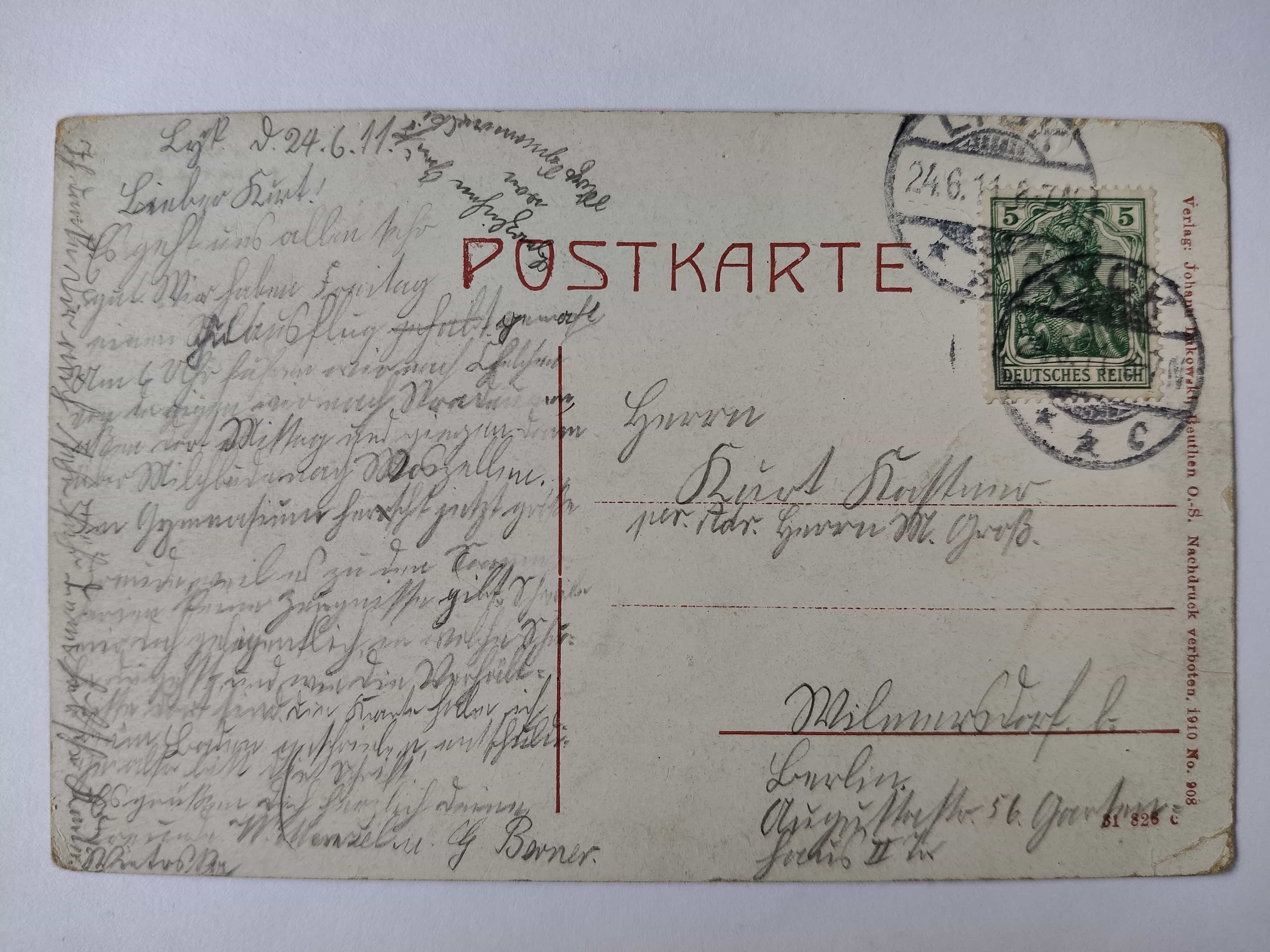 Przedmiotem licytacji jest oryginalna pocztówka. Stan zachowania oraz obieg widoczny na fotografiach, brak wad ukrytych.