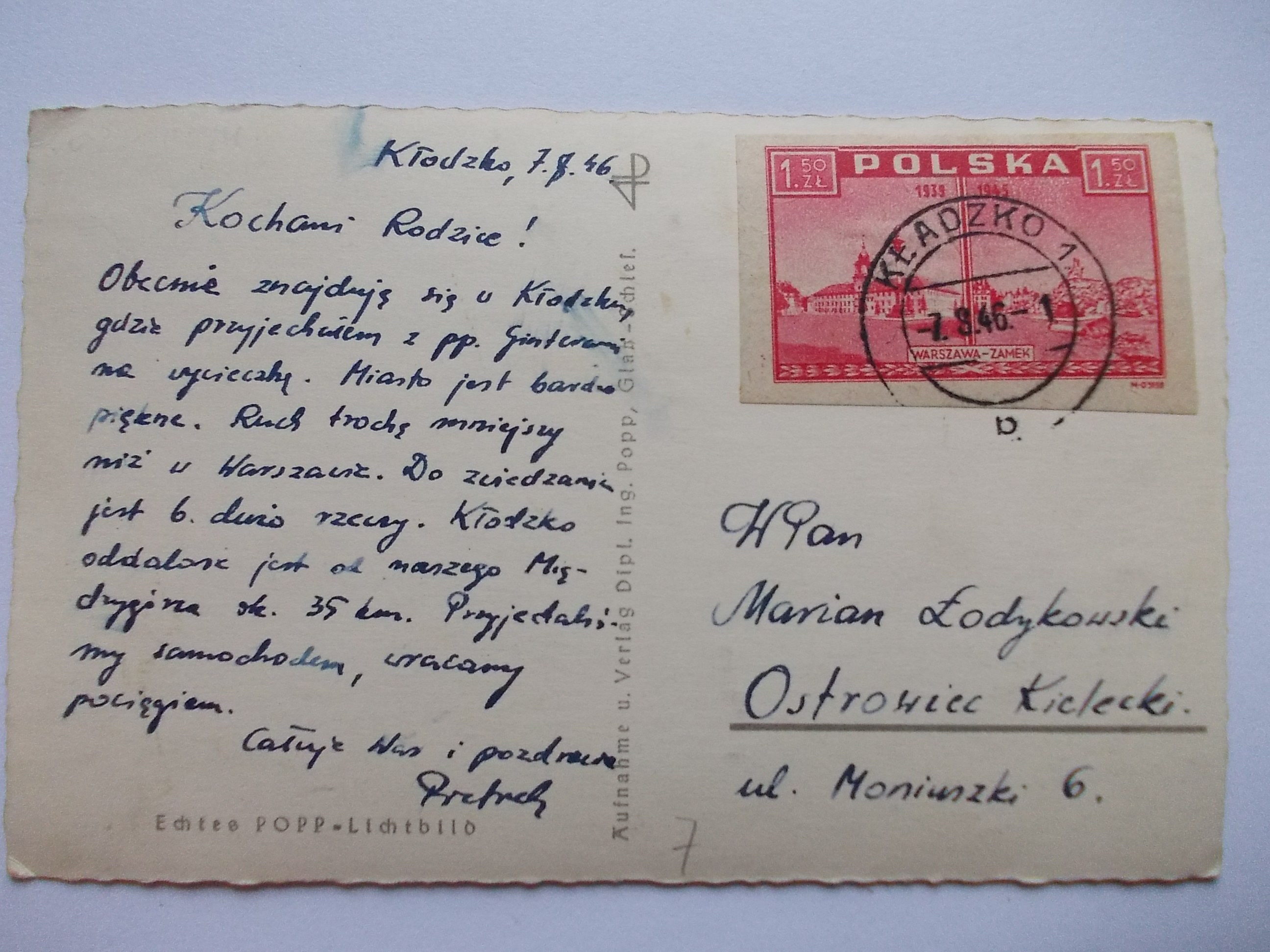Kłodzko, Glatz, panorama, wydawca Popp. ok. 1940 (wysłana w 1946 r.)