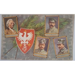 Pocztówka patriotyczna Piłsudski, Paderewski, Haller, Dowbór - Muśnicki ca. 1919