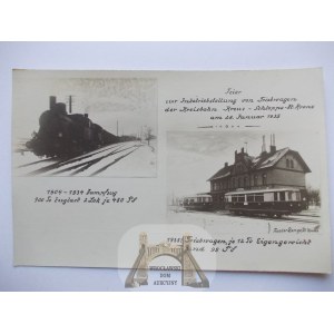Człopa, Schloppe, dworzec, parowiec i pociąg motorowy. Jubileusz linii Krzyż - Człopa, Wałcz, 1935
