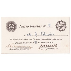 Automobilių klubo pažymėjimas, 1940