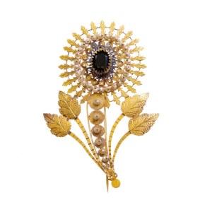 Sardinian brooch in gold and precious stones - Sardinia, 19th-20th century